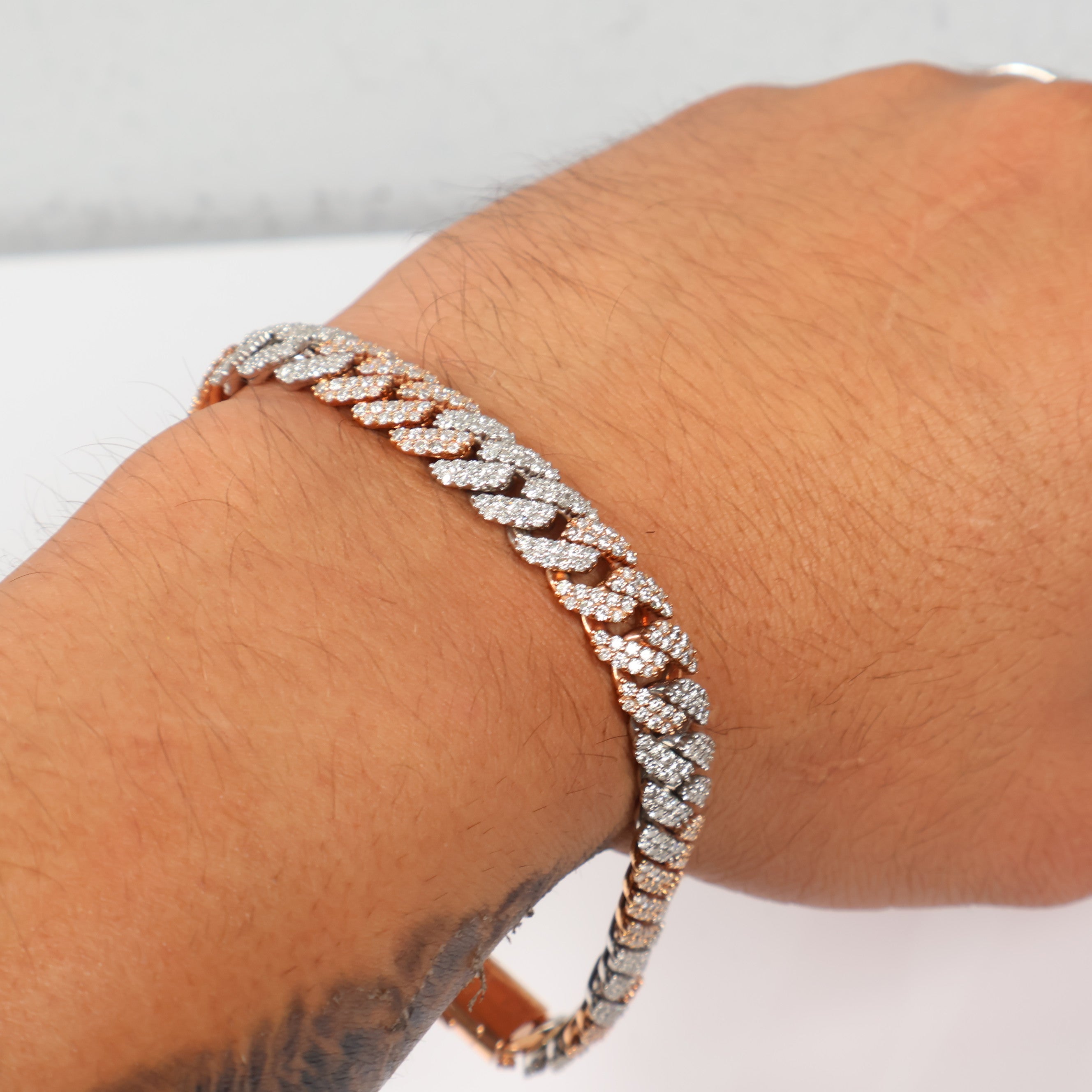10K 2 Tone Cuban links Bustdown Bracelet / 47.57gr / 10mm / 9in / D-7.70Ct