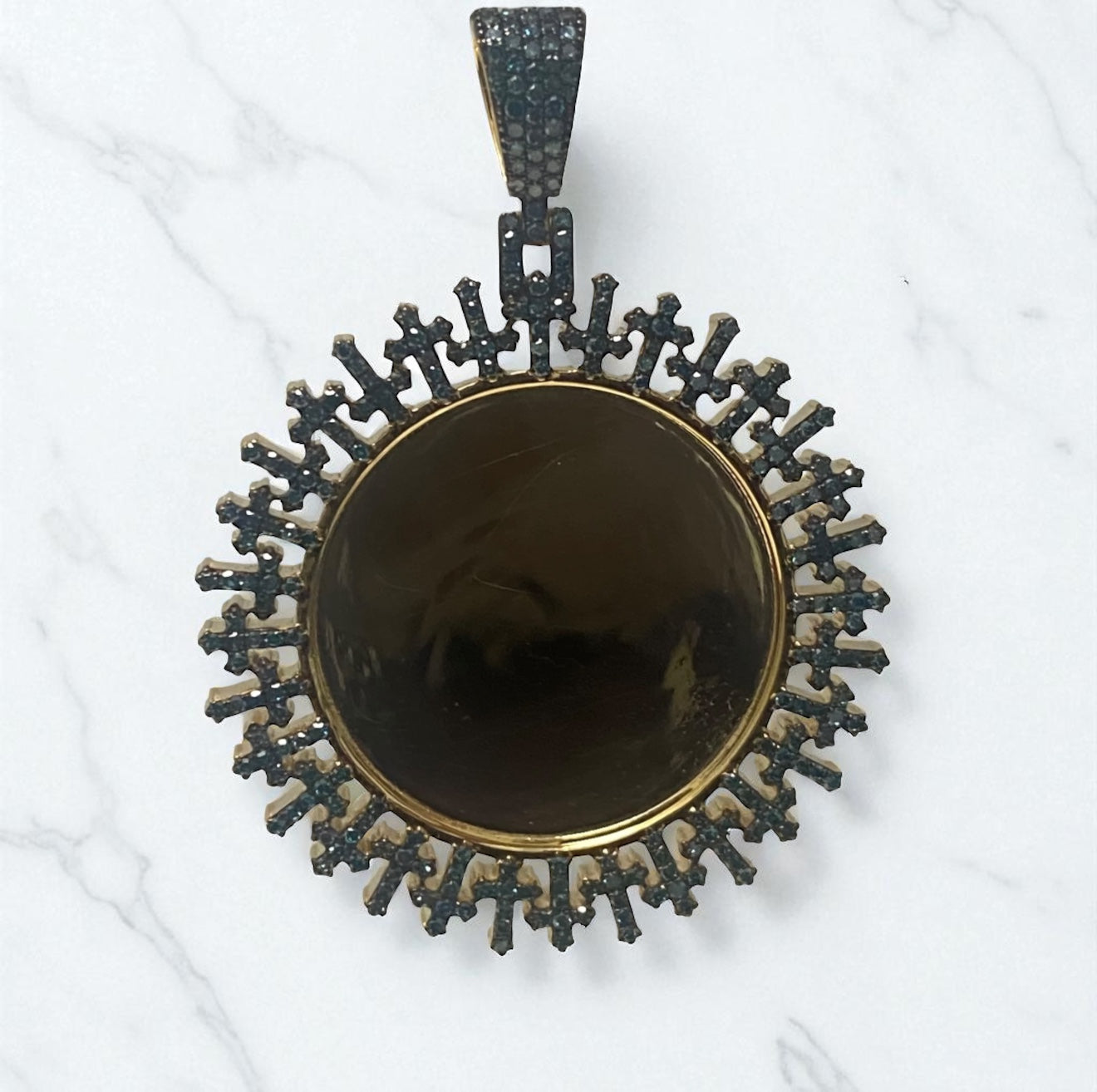 10K Yellow Gold Diamond Memorial Blue Crosses Pendant 1.14 Ct Dia / 16.48gr / 1.5 - 1.8in