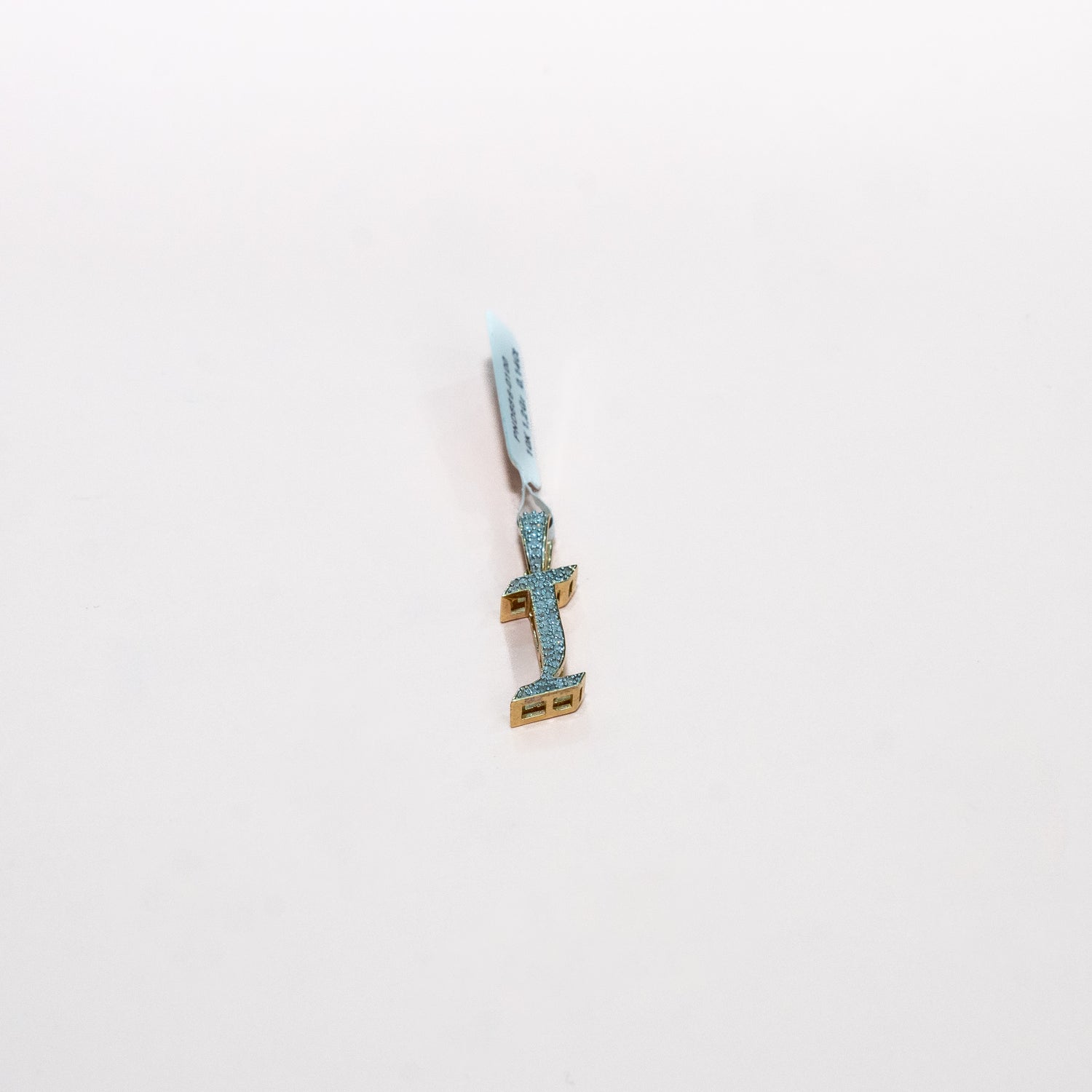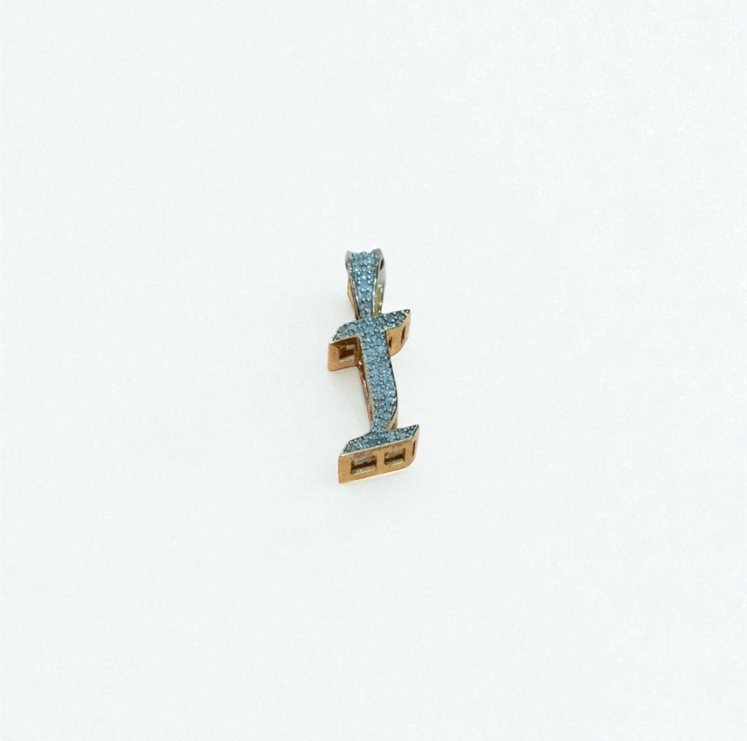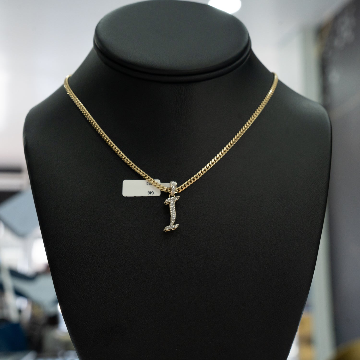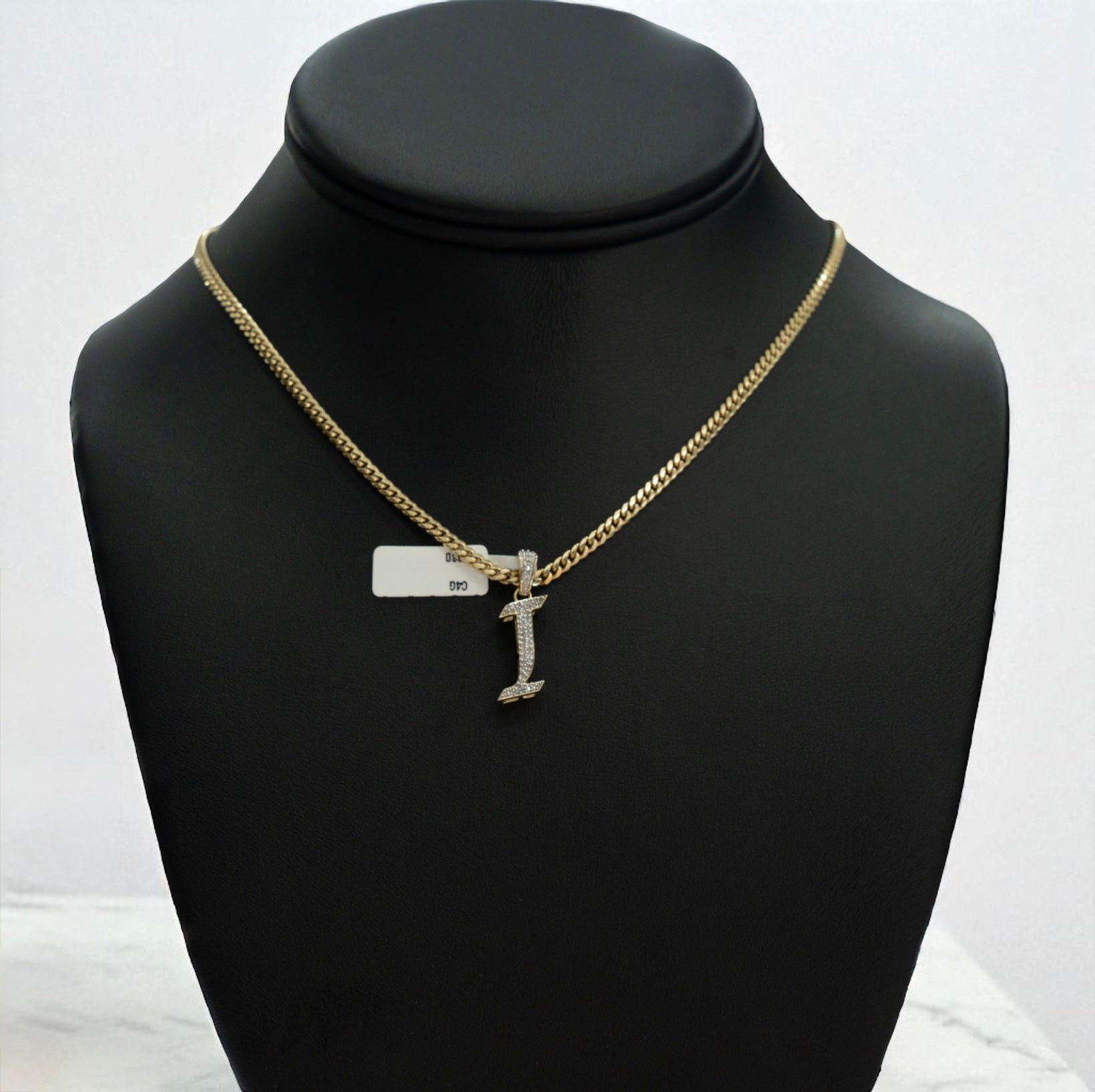 10K Yellow Gold Letter I Pendant With Diamond 0.14Ct / 1.2gr