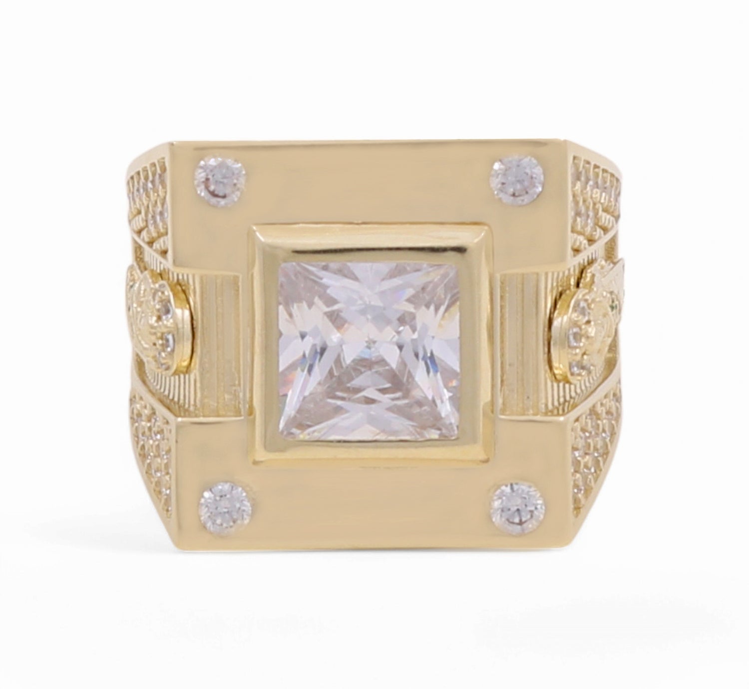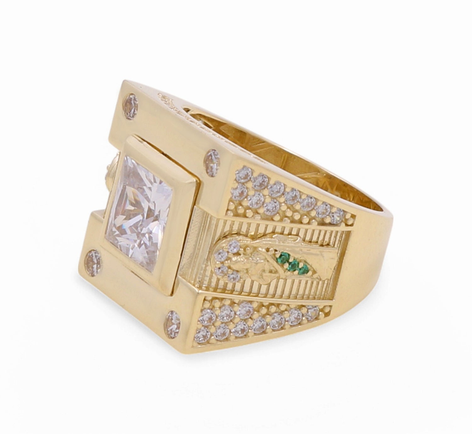 This powerful 10K yellow gold men's ring features a detailed image of San Judas Tadeo, accented with sparkling cubic zirconia that enhance its sacred presence. Known as the patron saint of hope and protection, this ring is both a bold expression of devotion and a timeless piece of craftsmanship.