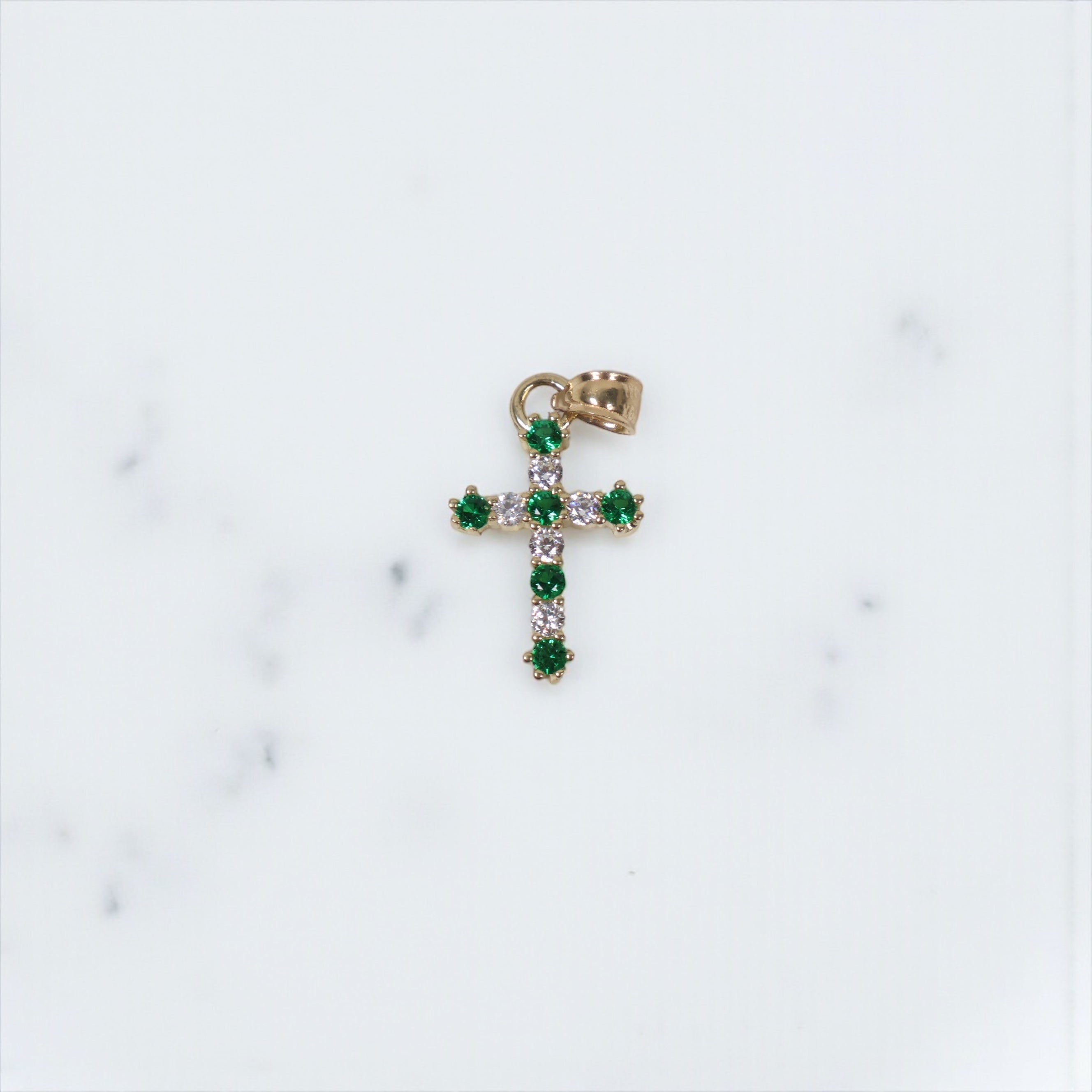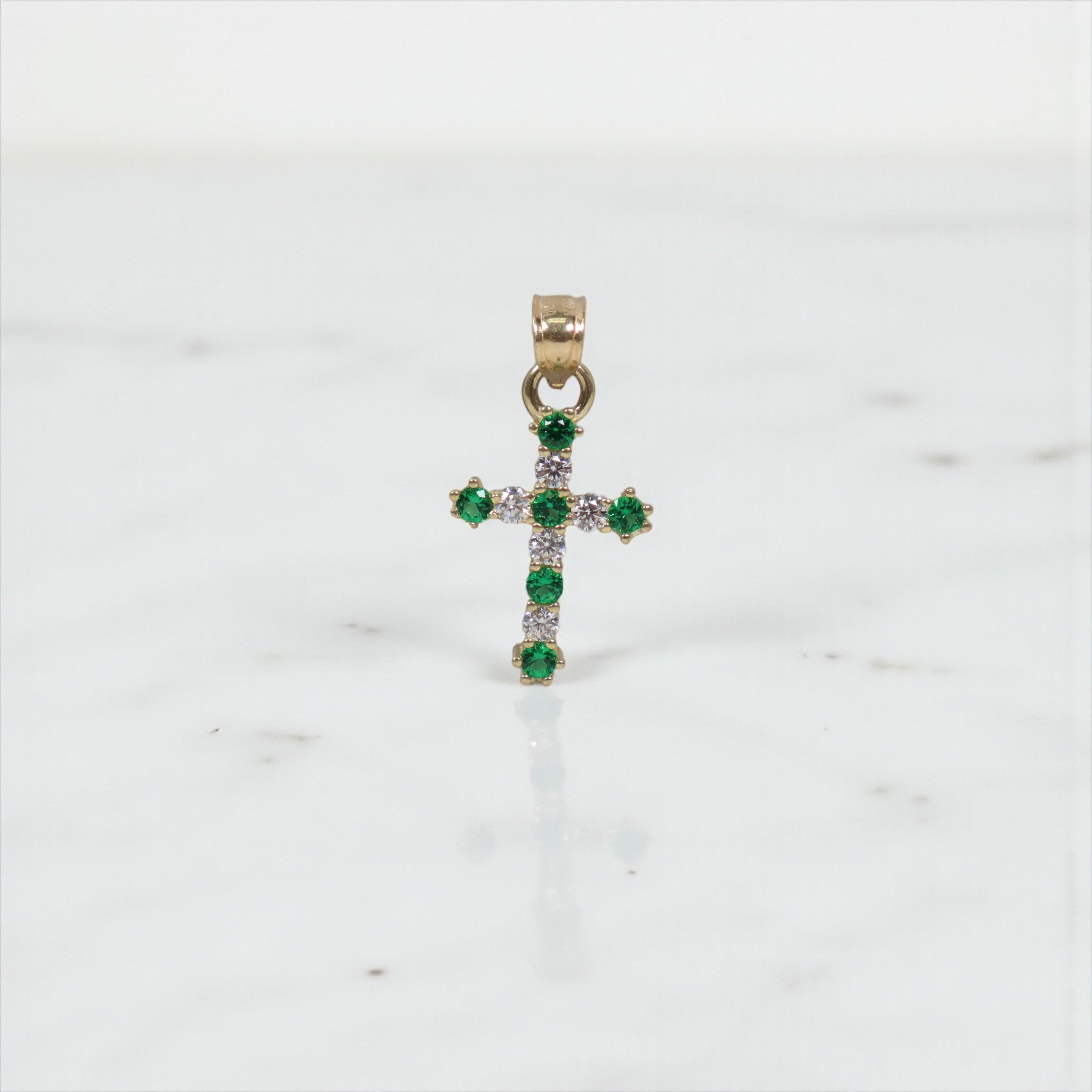 10K YG Cross Pendant / 1.1gr / 0.8in / With Green- Zircons