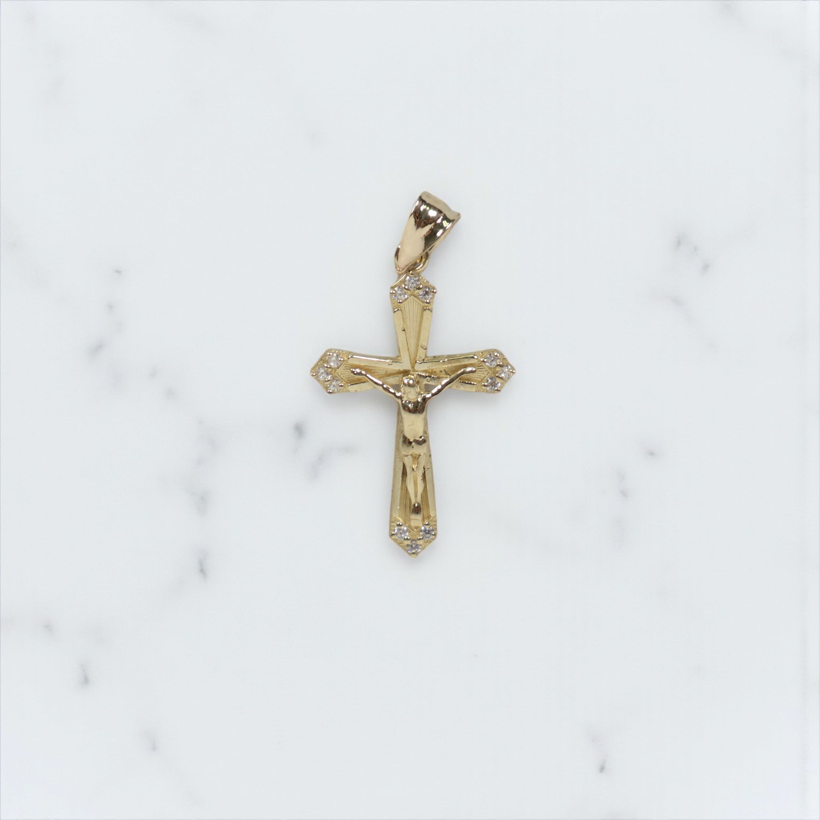 10K YG Crusifix Pendant / 1.37gr / 1.2in / With White Zircons