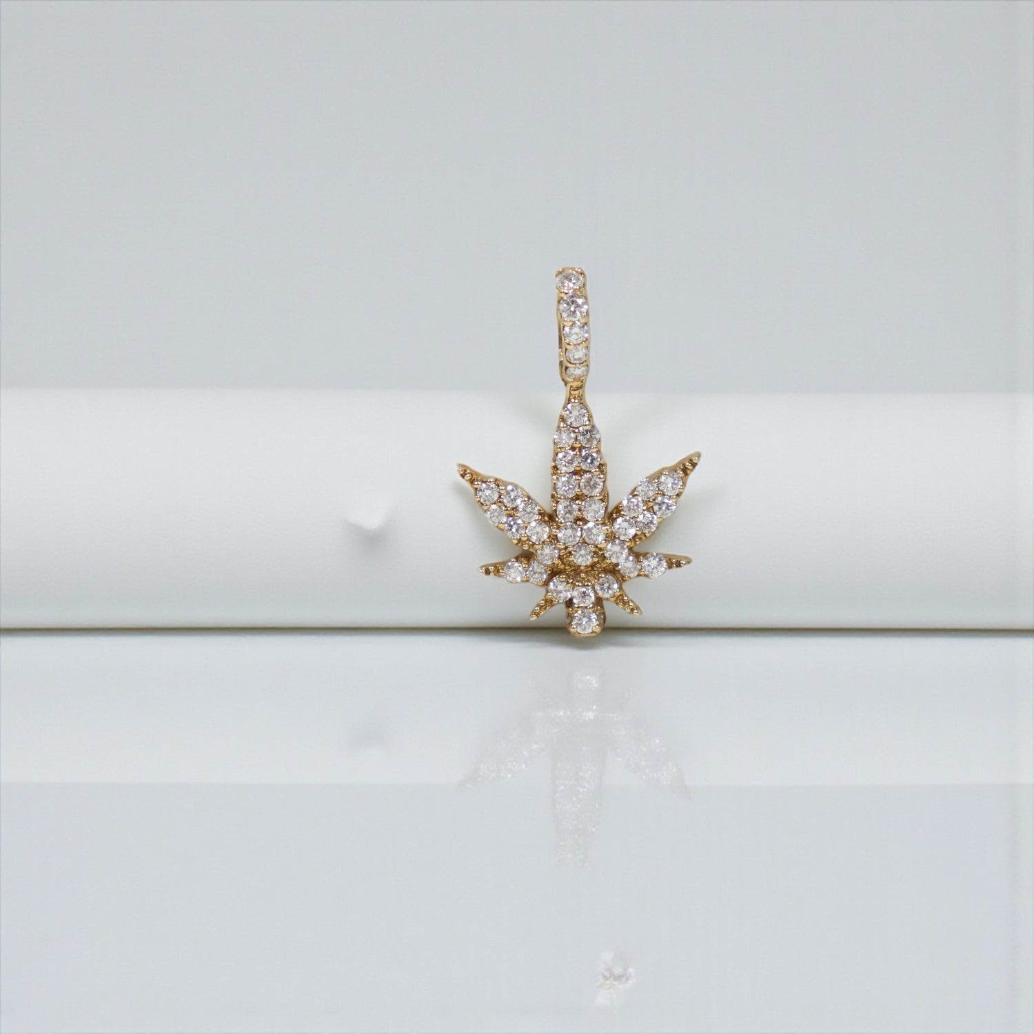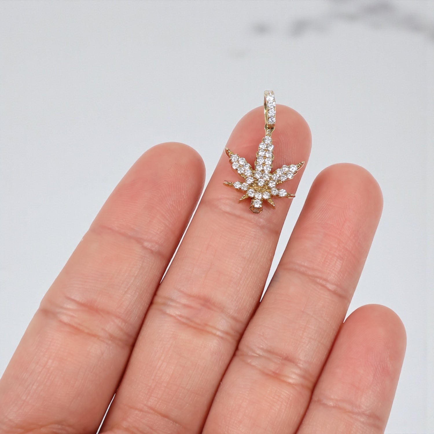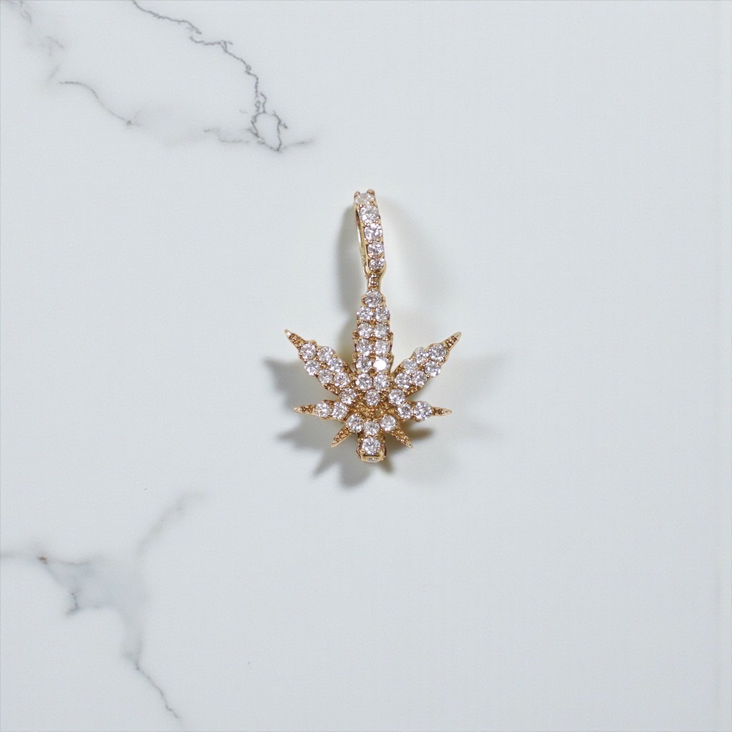10K YG Diamond Cannabis Leaf Pendant / 2.9gr / 1in / D-0.6Ct
