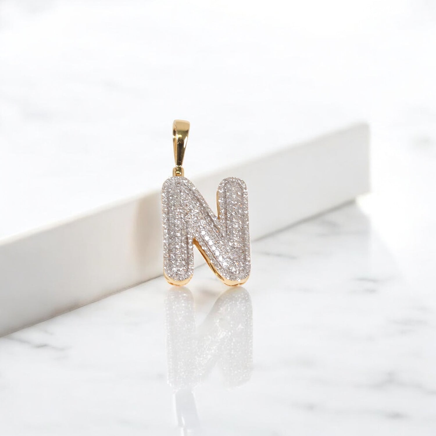 10K YG Diamond Letter N Pendant / 2.8gr / 1.1in / 0.57Wt Dia