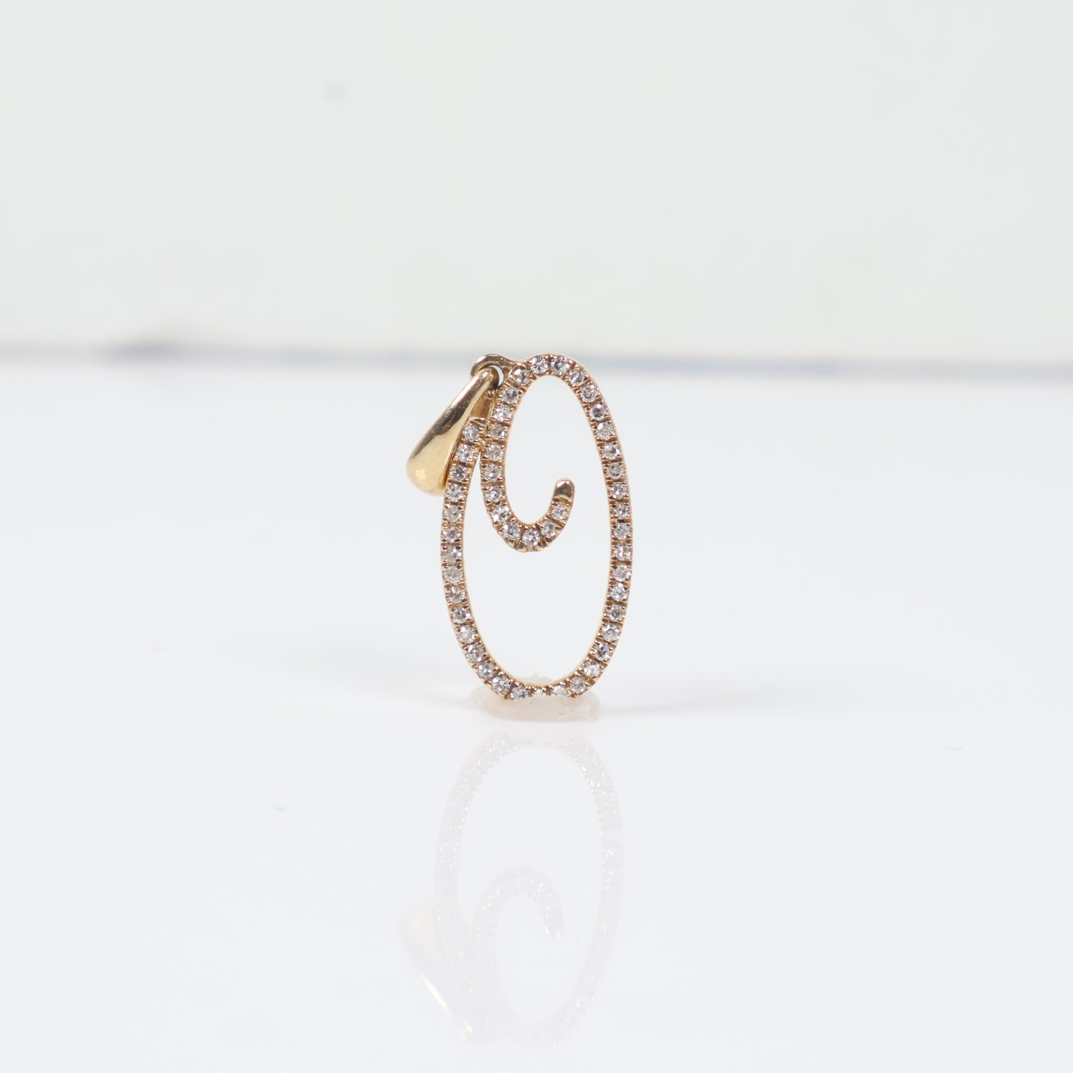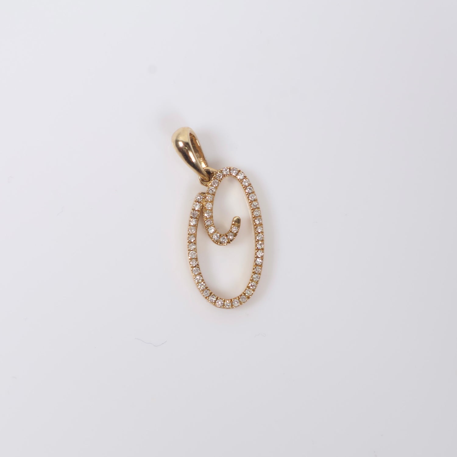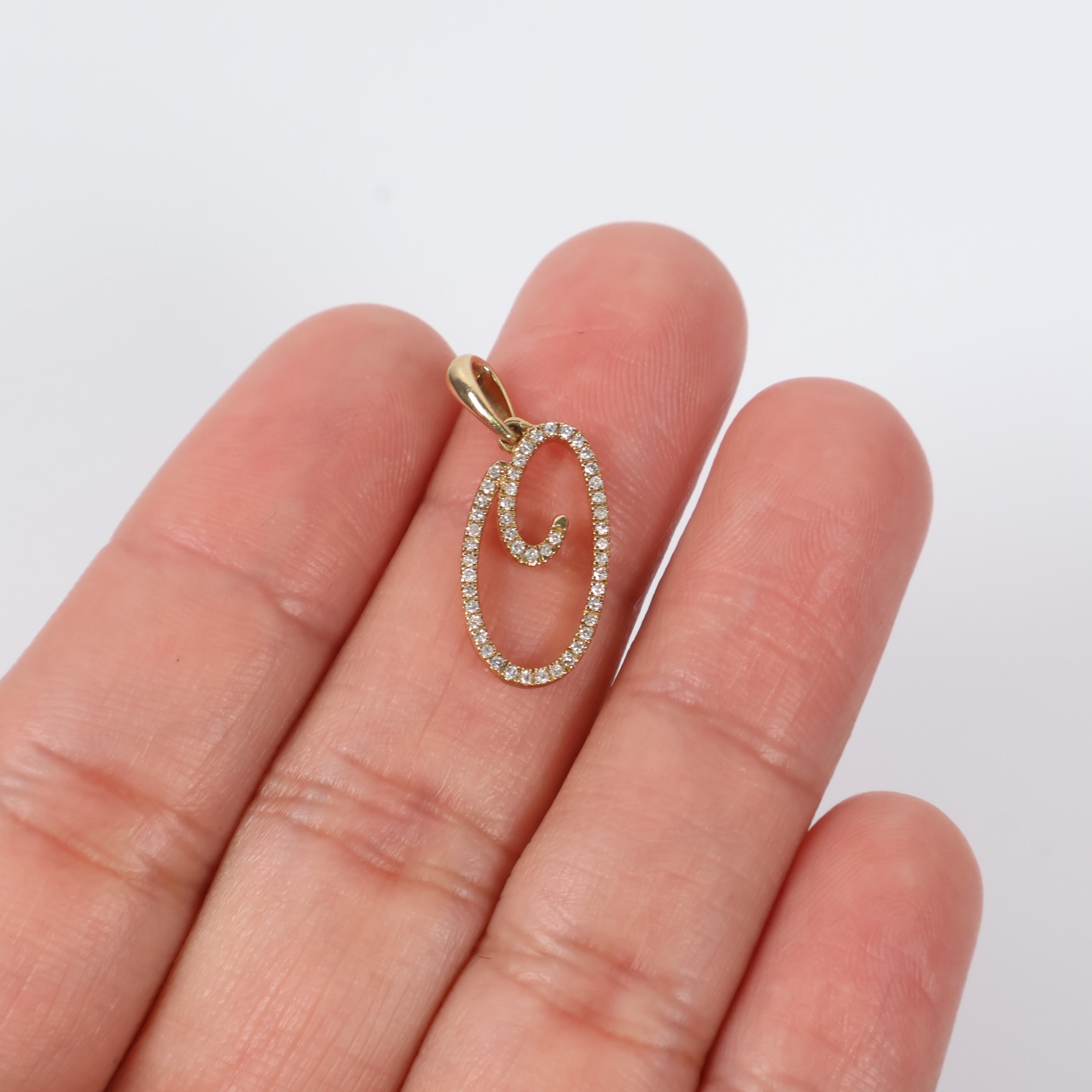 10K YG Diamond Little Letter O Italics Pendant / 1.41gr / 0.8in / D-0.20Ct