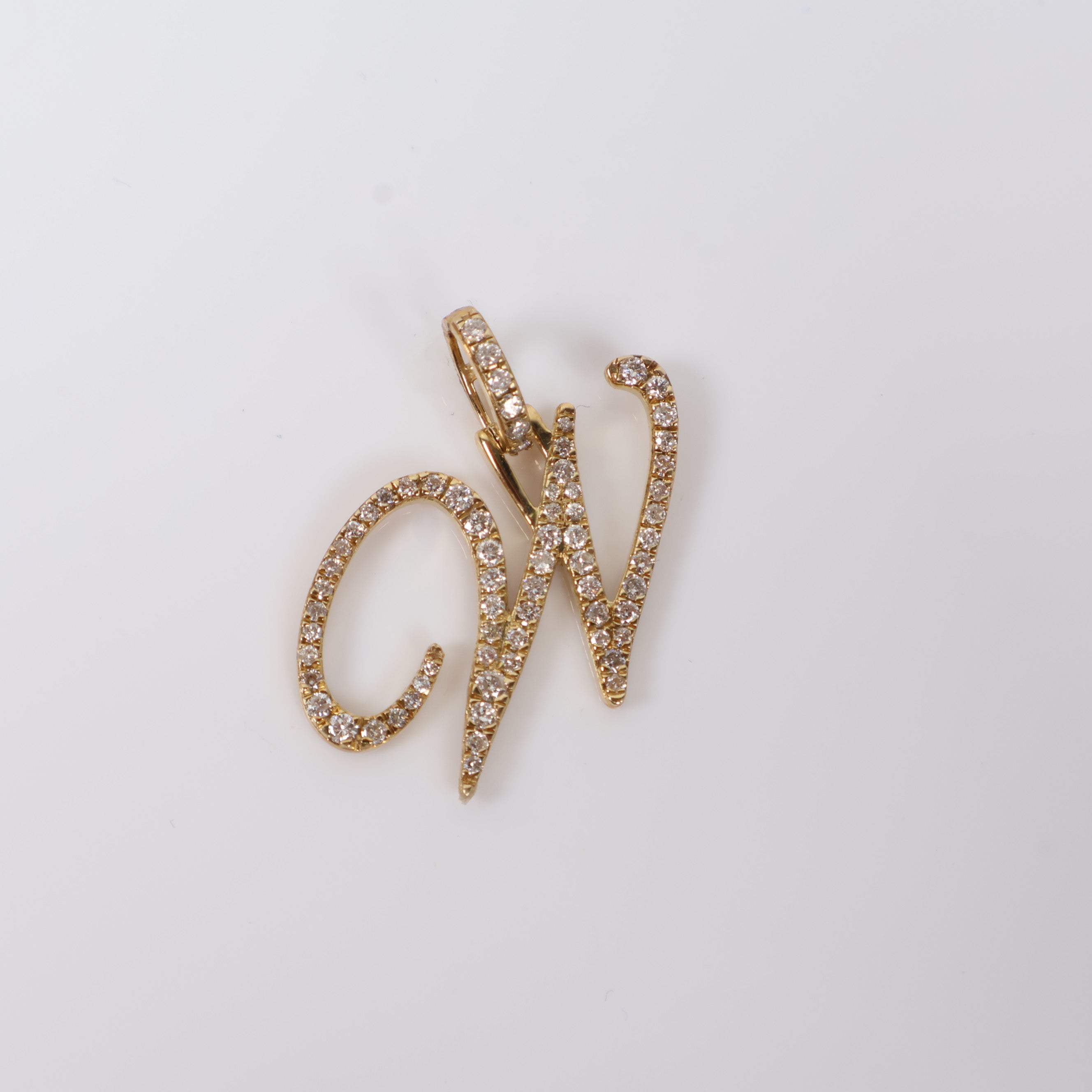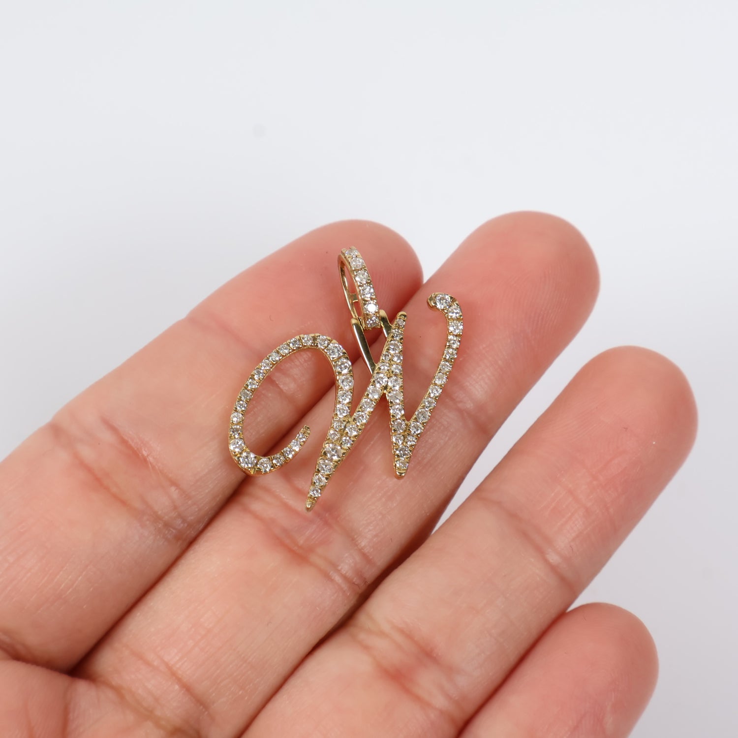 10K YG Diamond Letter W Italics Pendant / 2.8gr / 0.8in / D-0.80Ct
