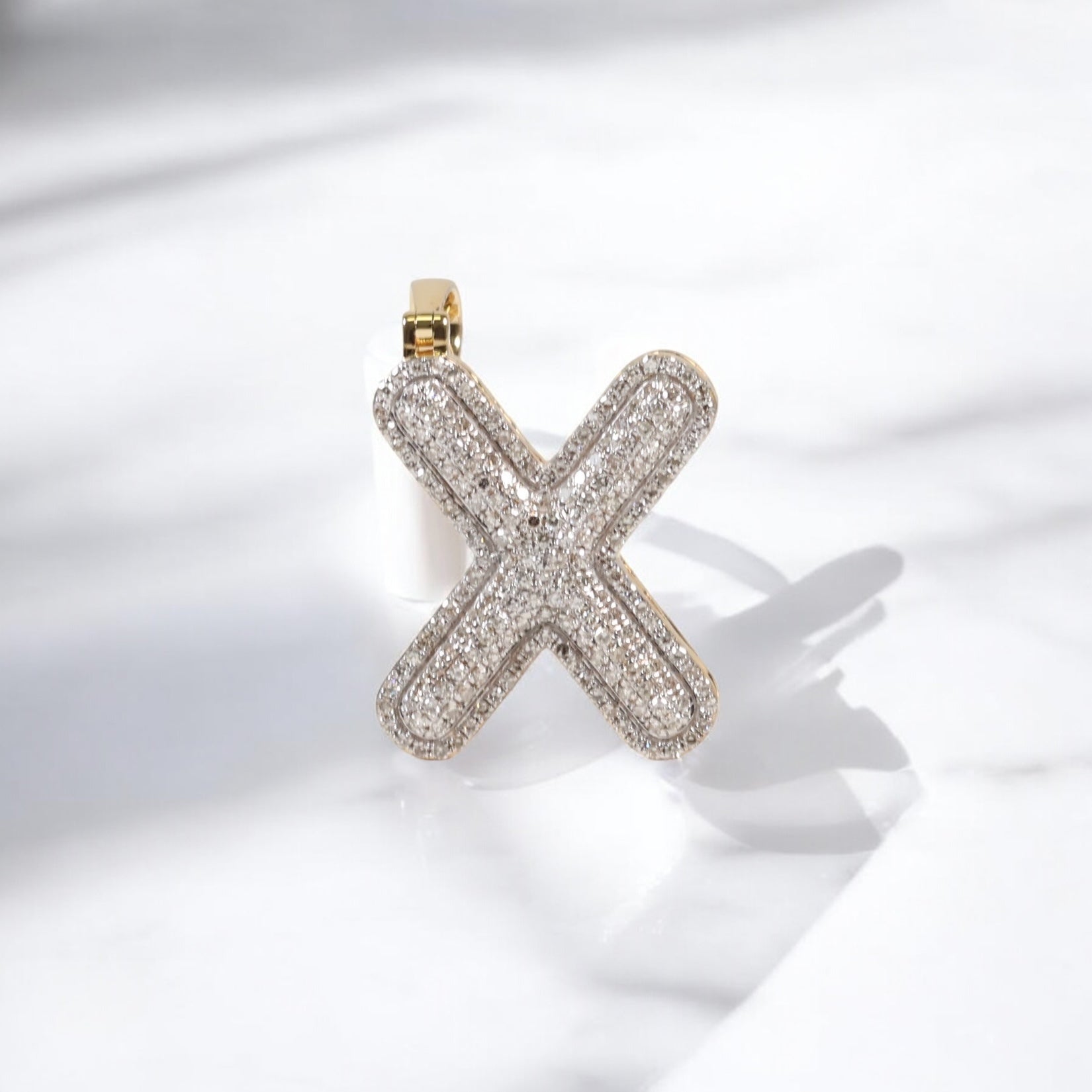 10K YG Diamond Letter X Pendant / 2.91gr / 1.1in / 0.49Wt Dia