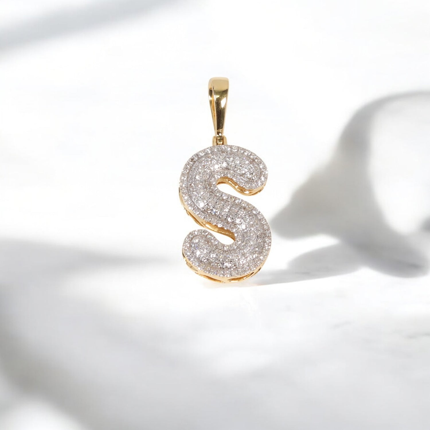 10K YG Diamond Letter S Pendant / 2.25gr / 1.1in / 0.46Wt Dia