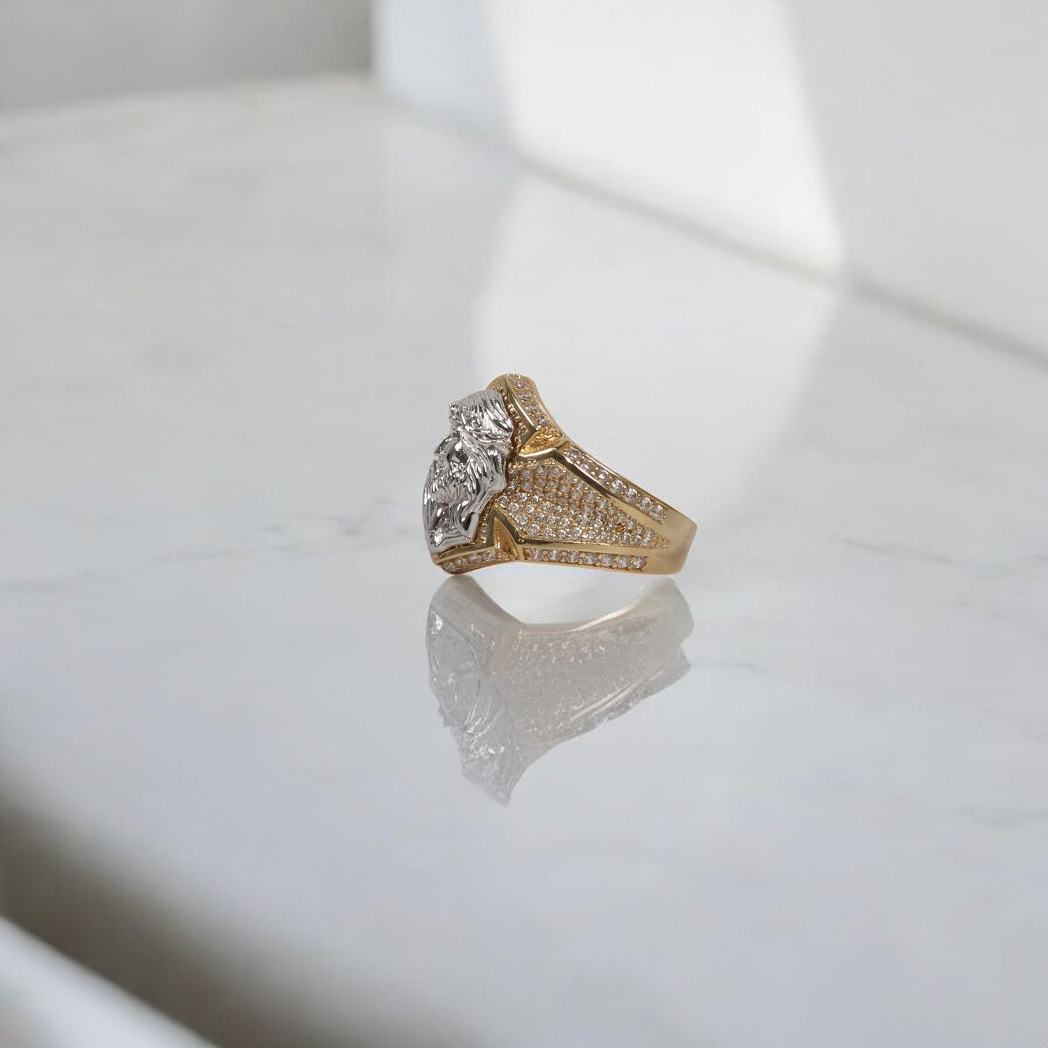 14K 2 Tone Jesus Praying Rings / 7.3gr / Sz 9 3/4 / White Zircons