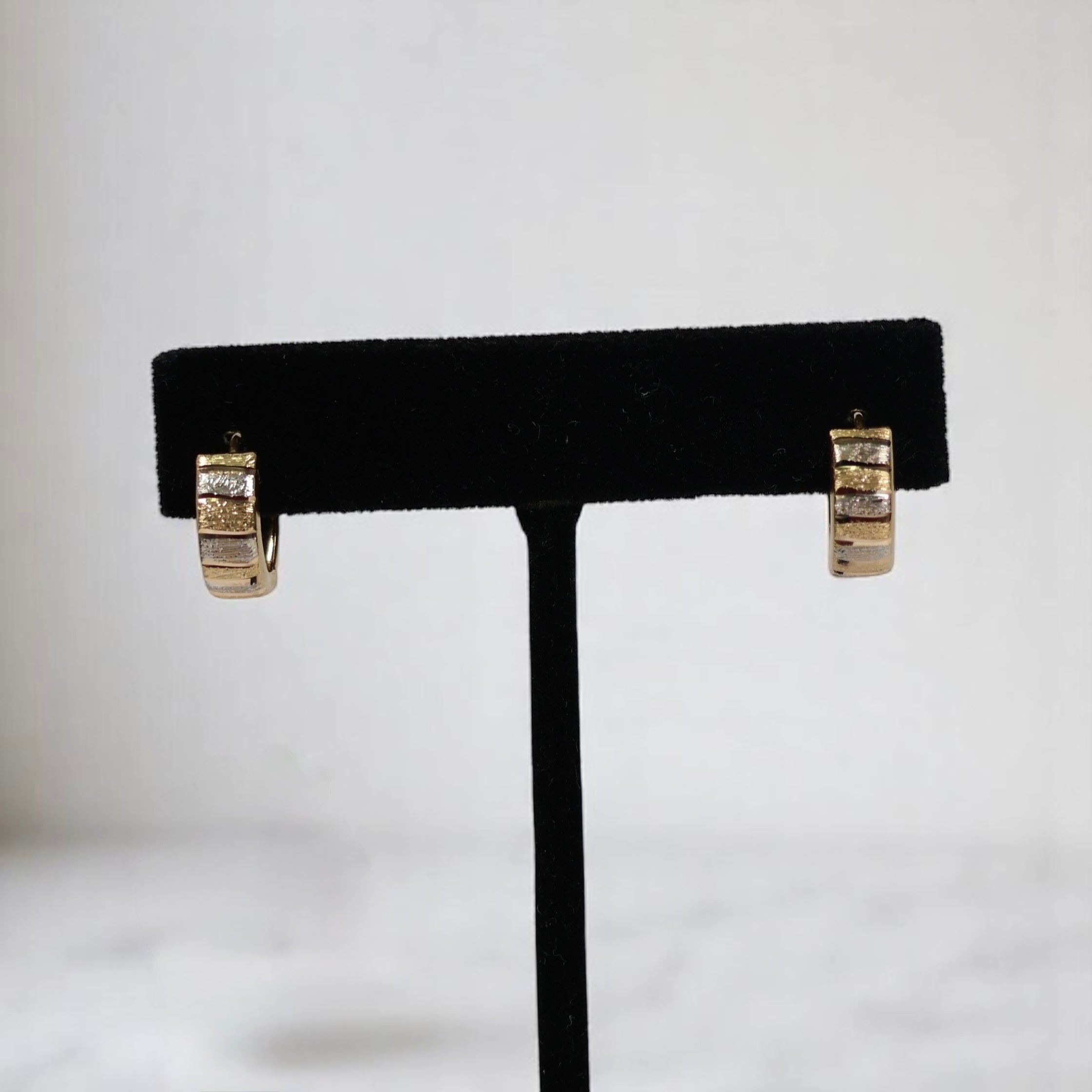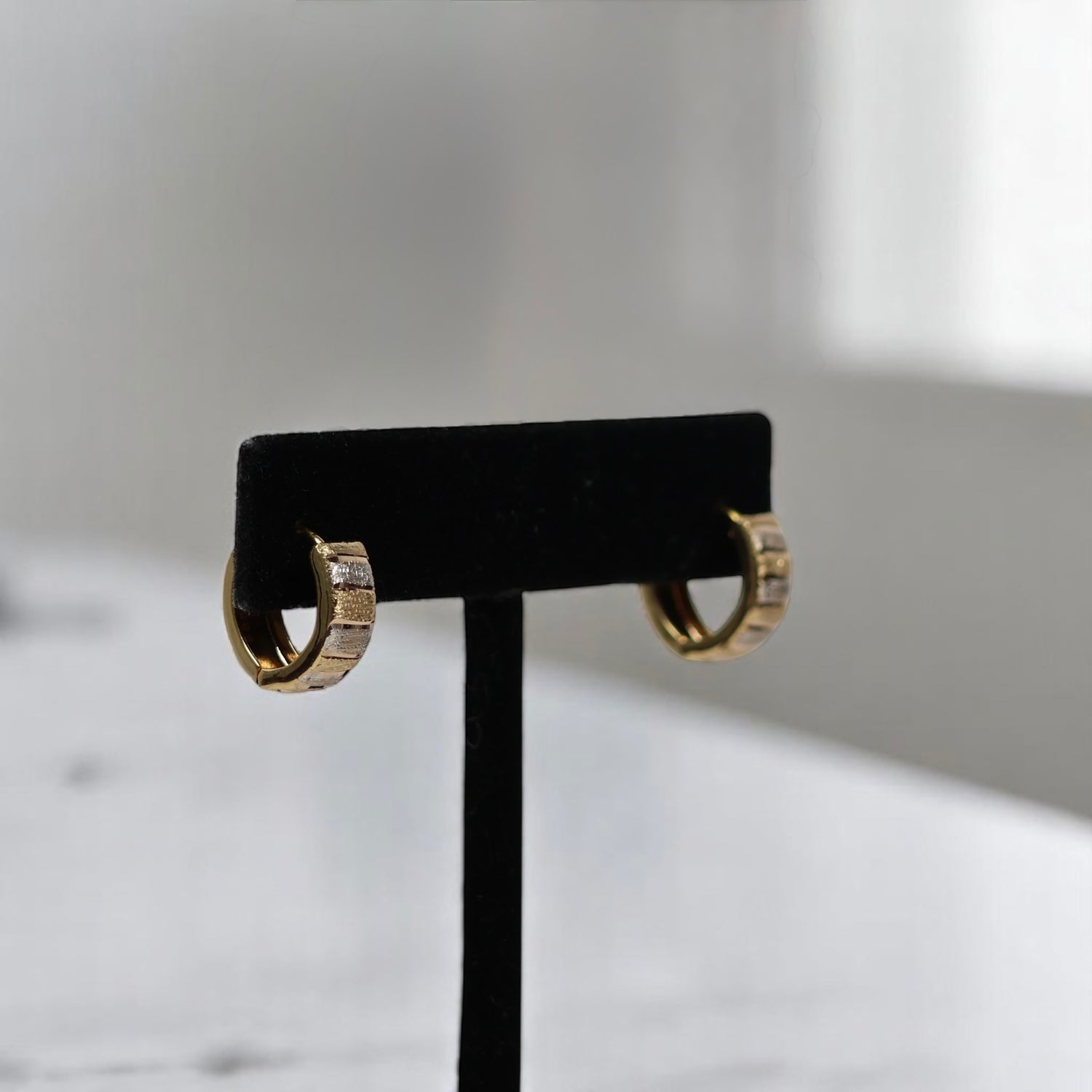 14K 2 Tone Luxury Hoop Earrings / 2.71gr / 0.5in /