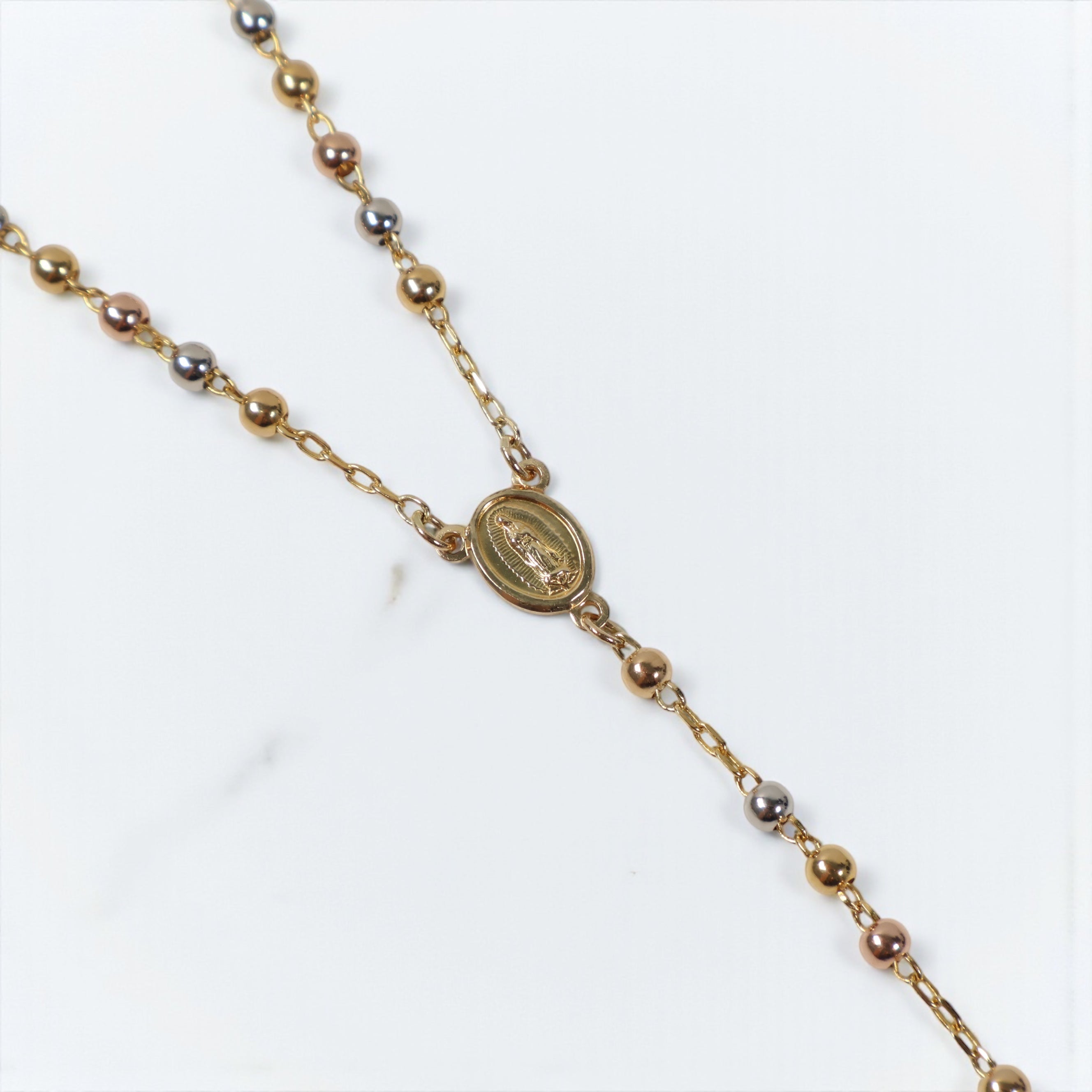 14K 3 Tone 0-10 Rosary - Smooth Balls Chain / 8.5gr / 3mm / 18in /