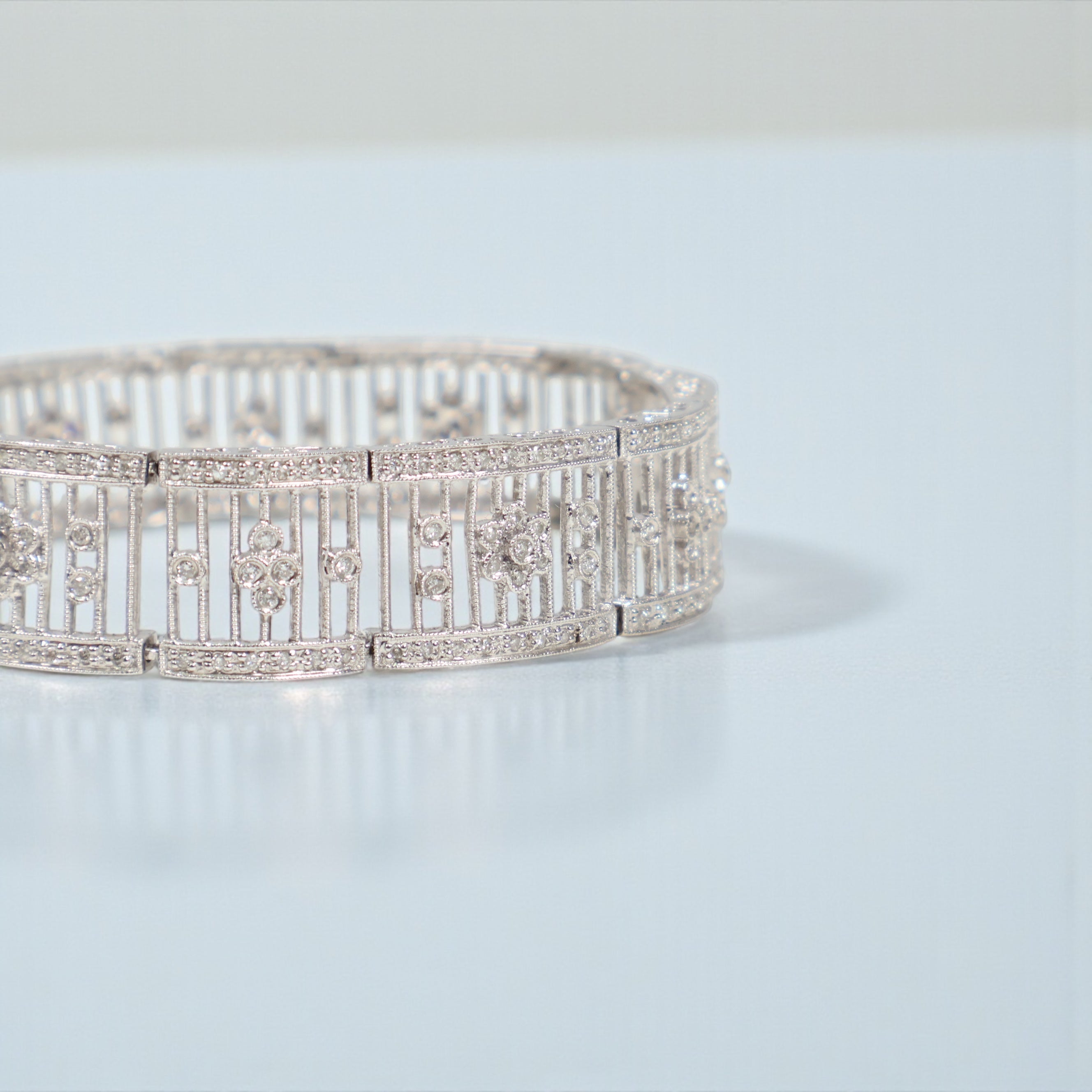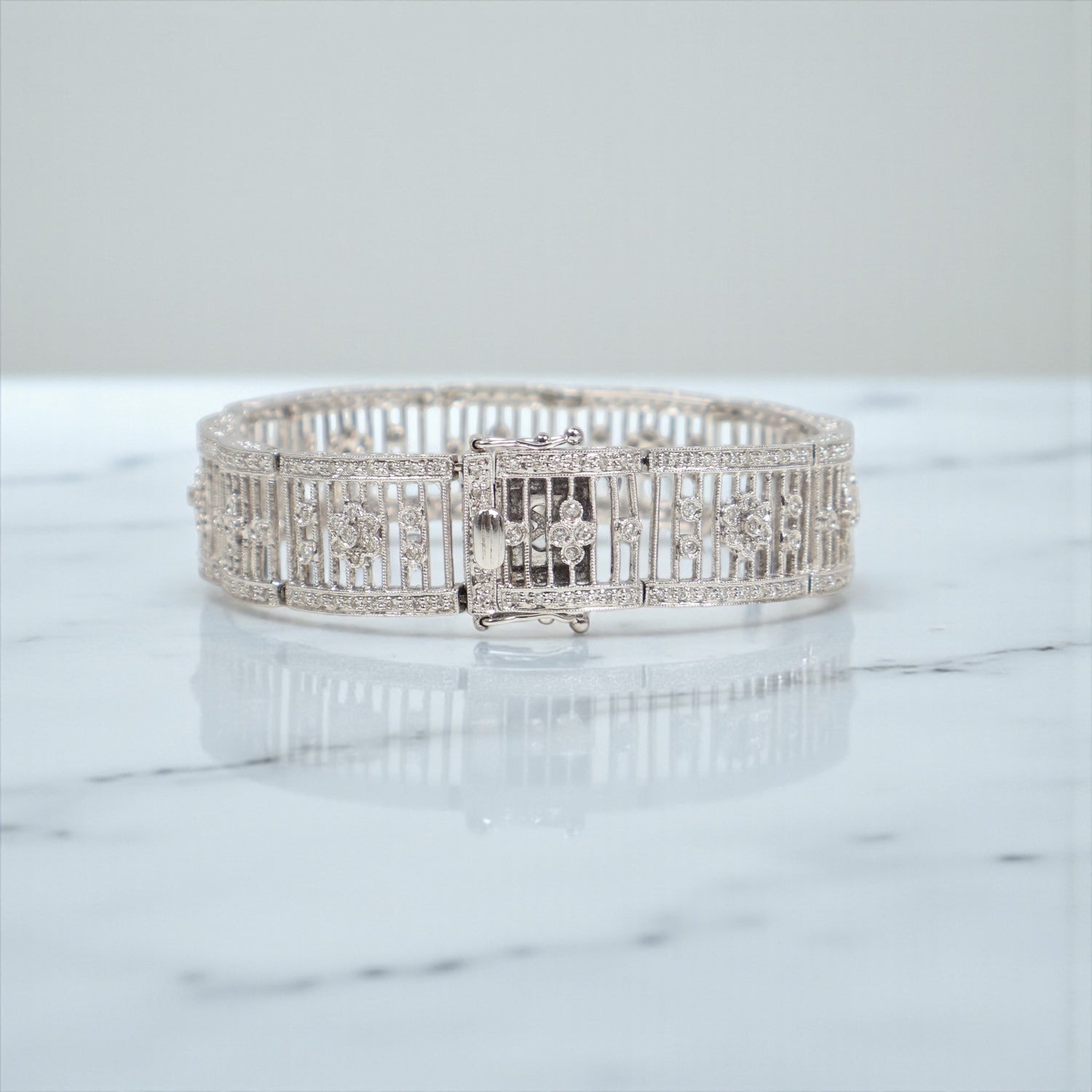 14K WG Diamond Fashion Little Flowers Bracelet / 25.4gr / 13.5mm / 7in / D-1.22Ct