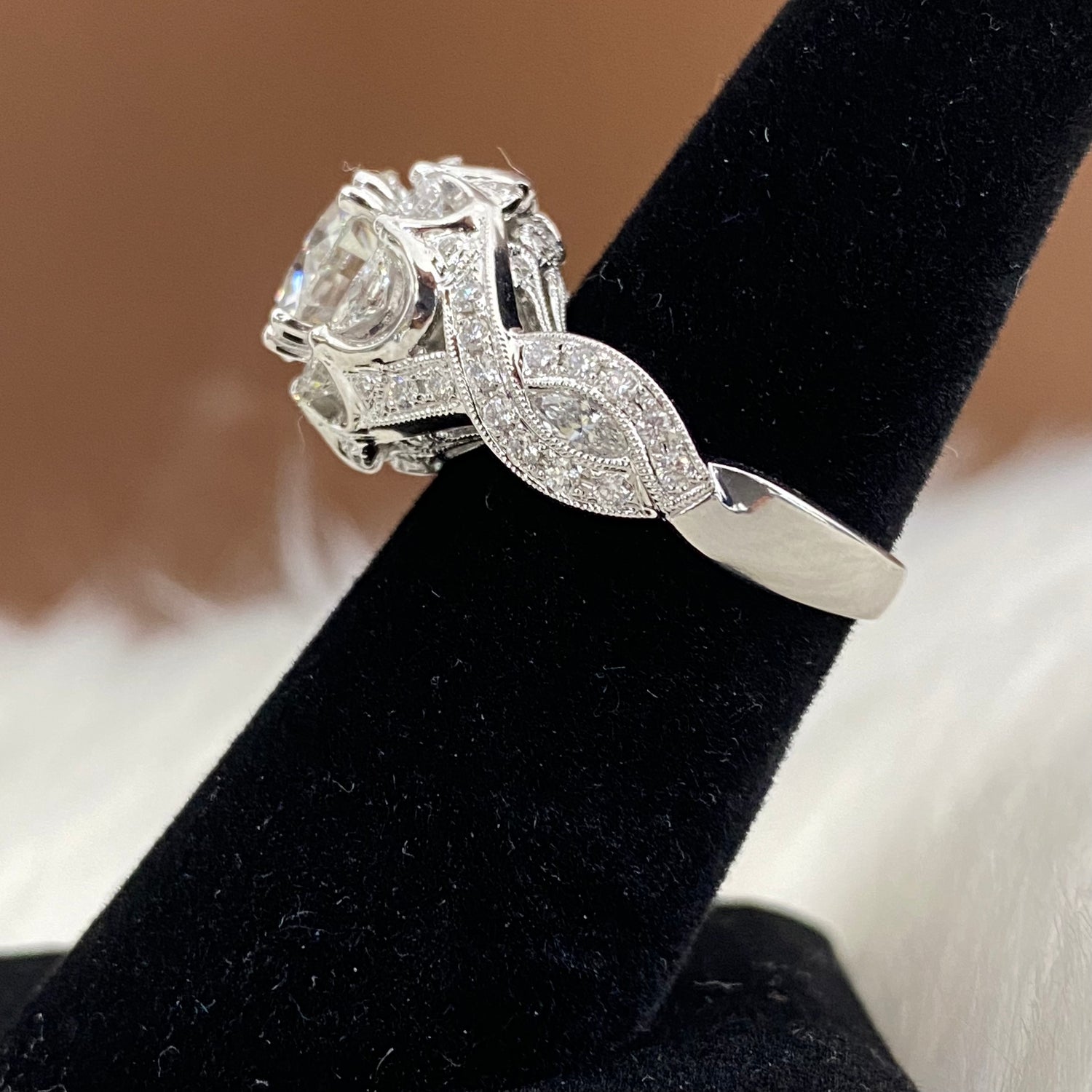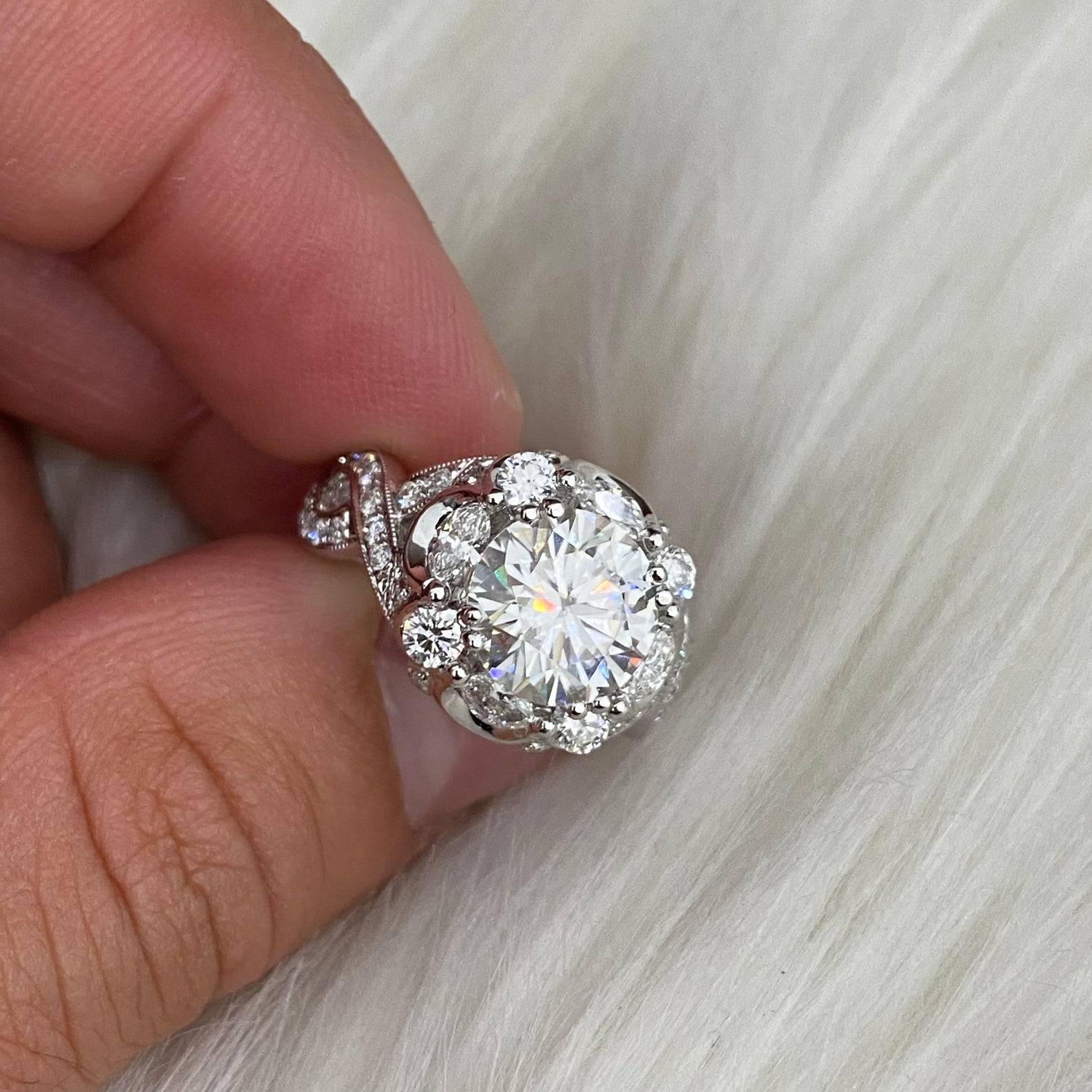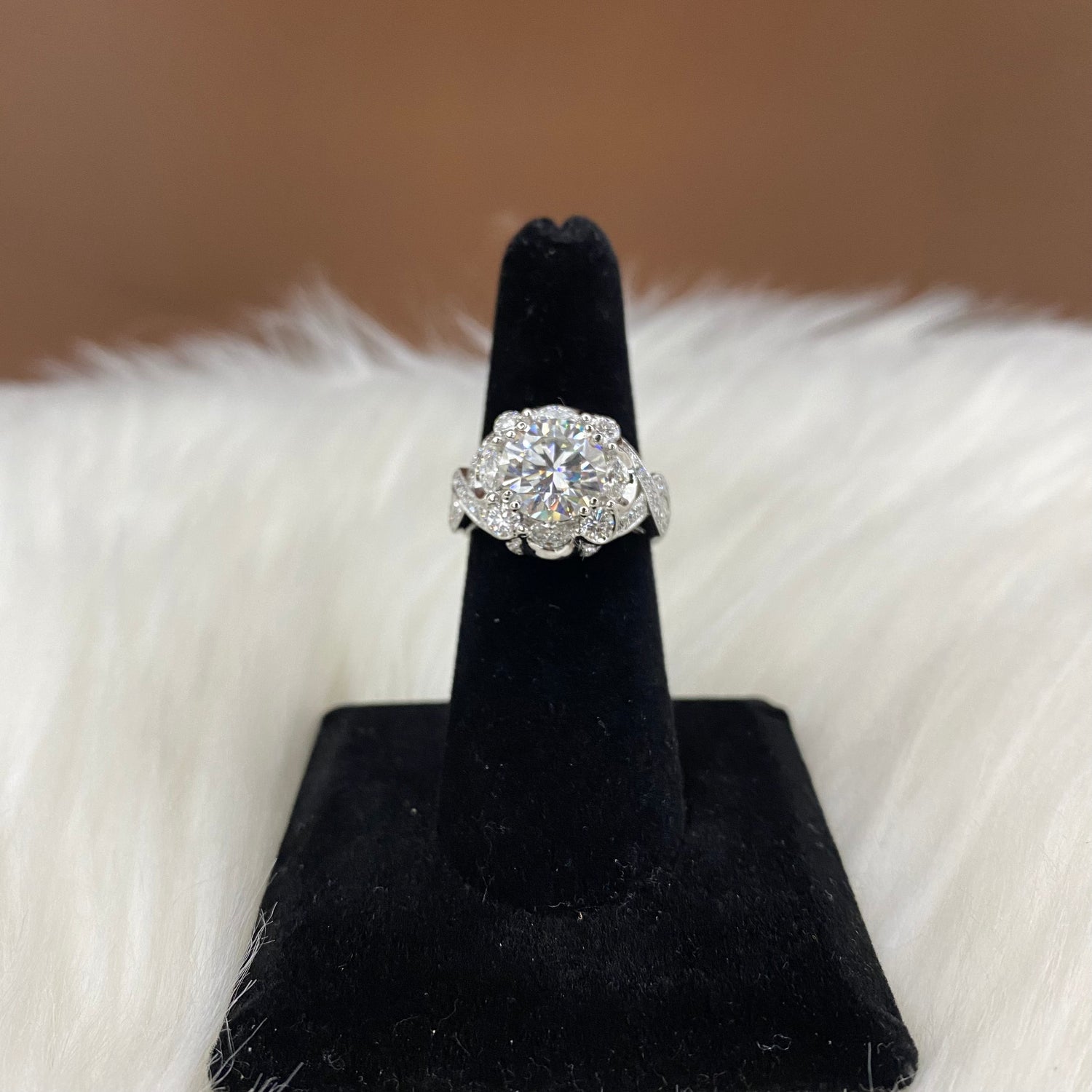 14K White Gold Diamond Flower Wedding Ring Ct Dia Moissanite / 8.5gr / Size 6