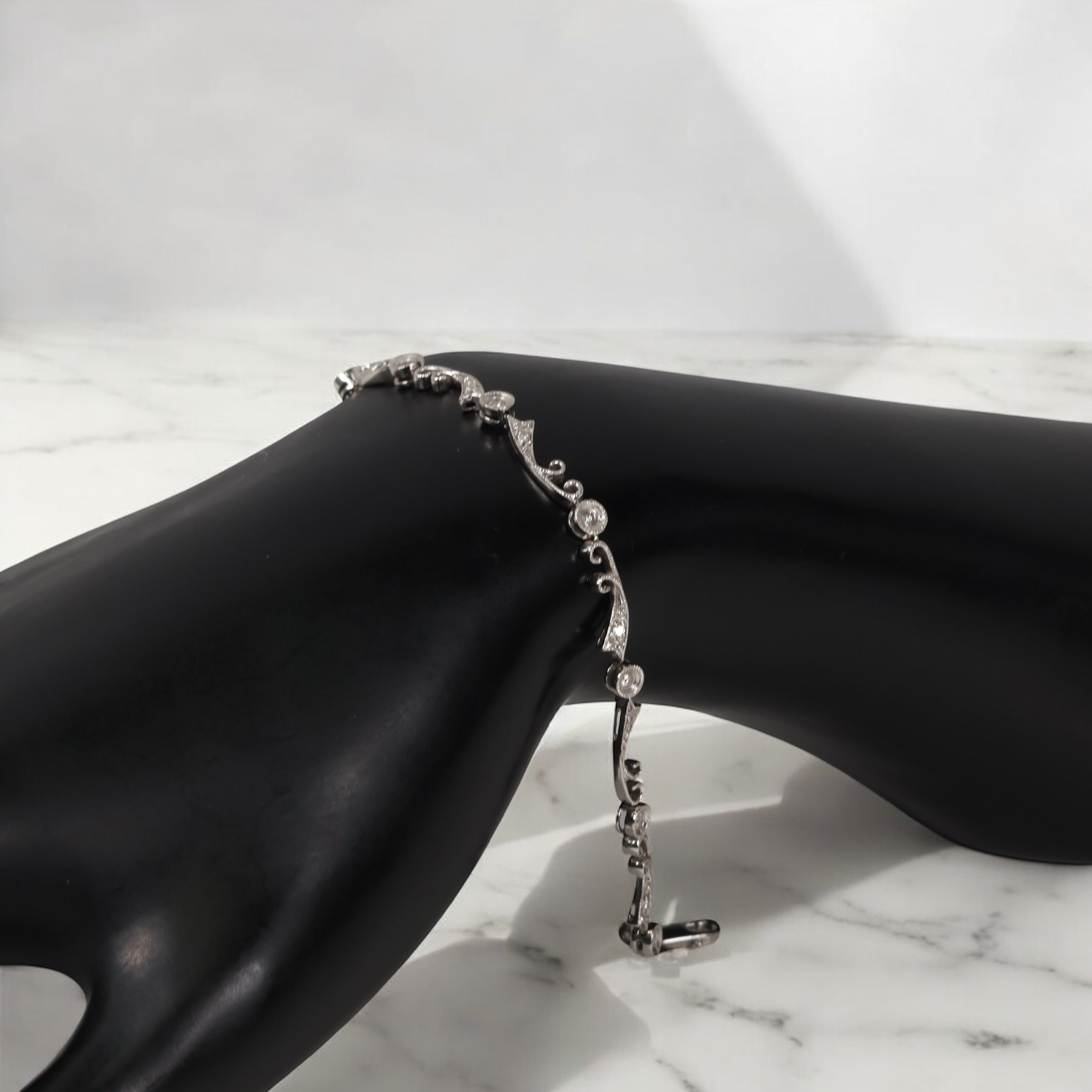 14K White Gold Diamond Luxury Bracelet Ct Dia / 6.4gr / 3.8mm / 7.5in