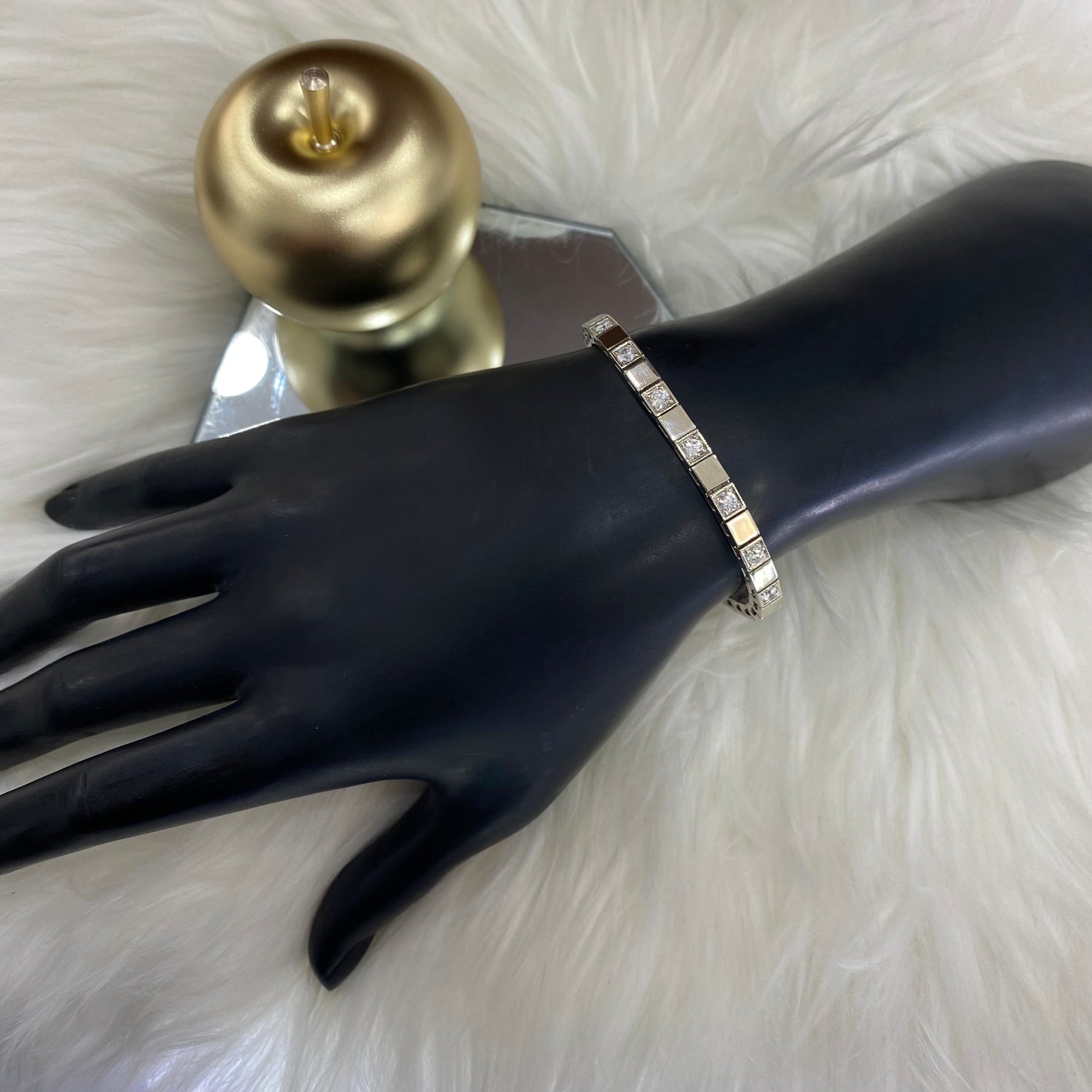 14K White Gold Luxury Bracelet With Diamond / 23.6gr / 4.5mm / 7in