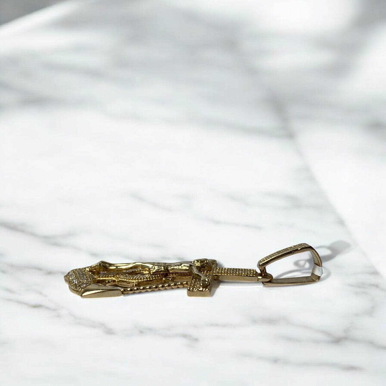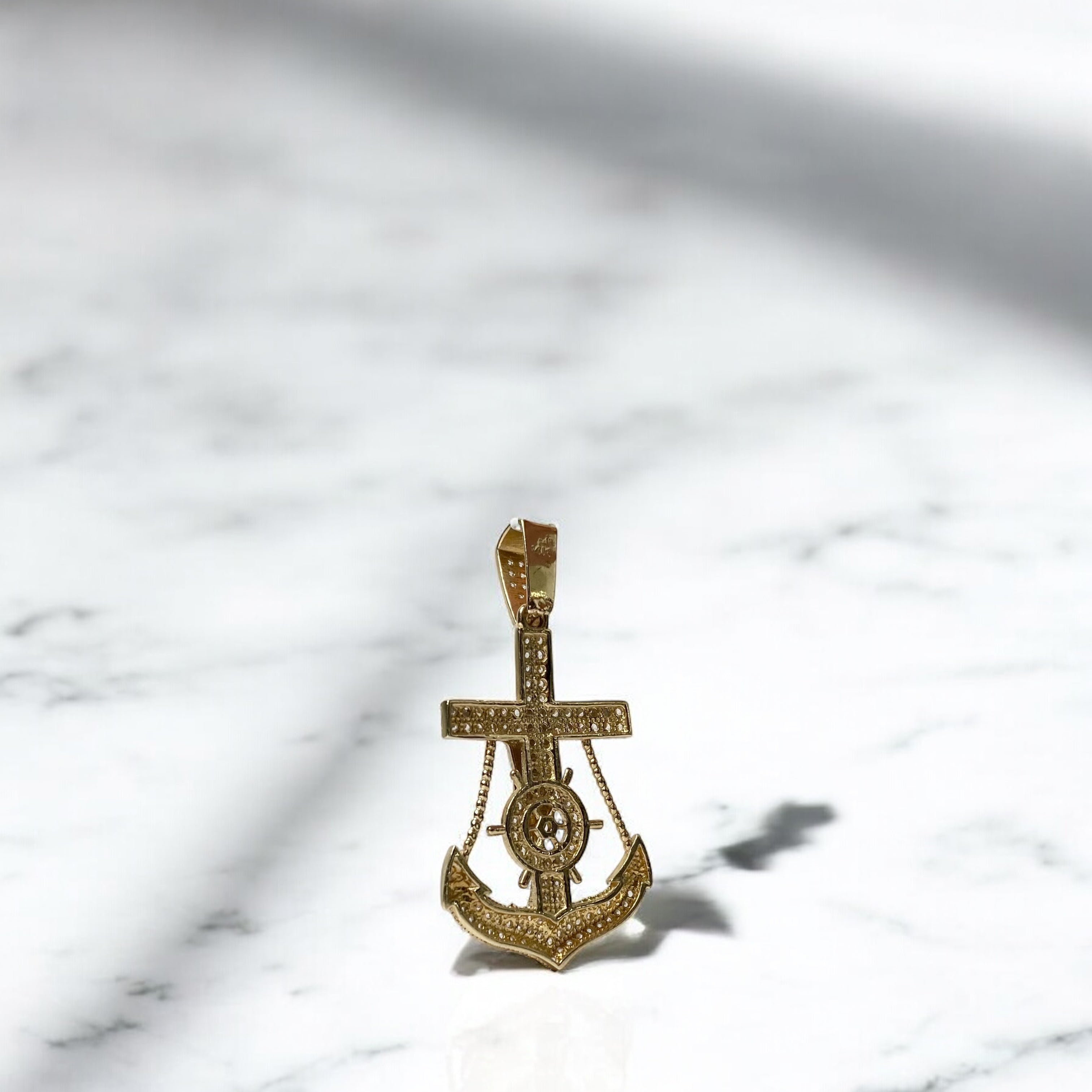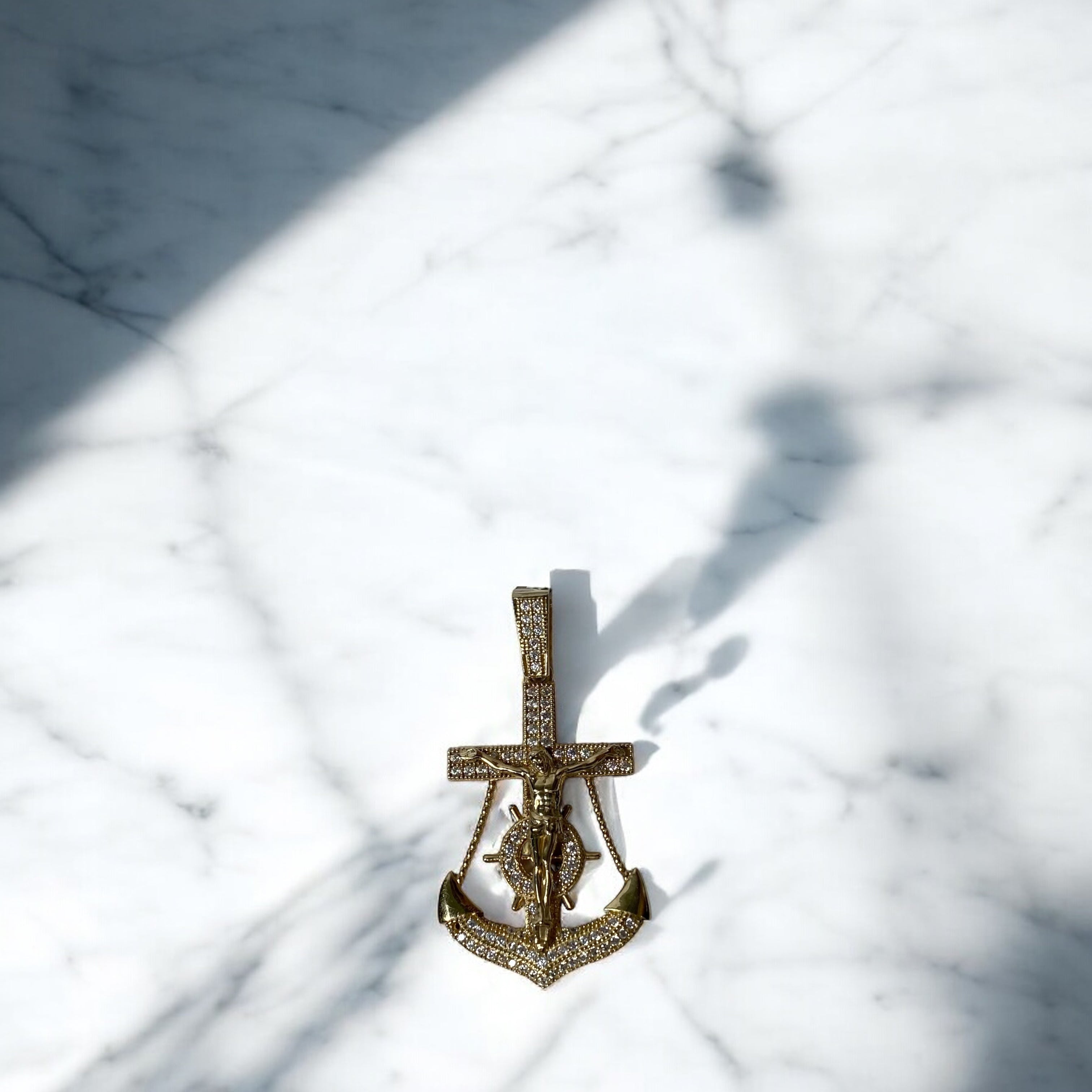 14K Yellow Gold Cross/Jesus Anchor Pendant With Zircons / 5.3gr / 2.5in