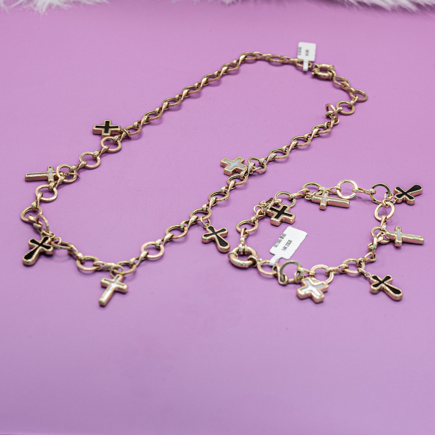 14K Yellow Gold Cross Jewelry Set Chain/Bracelet / 20gr