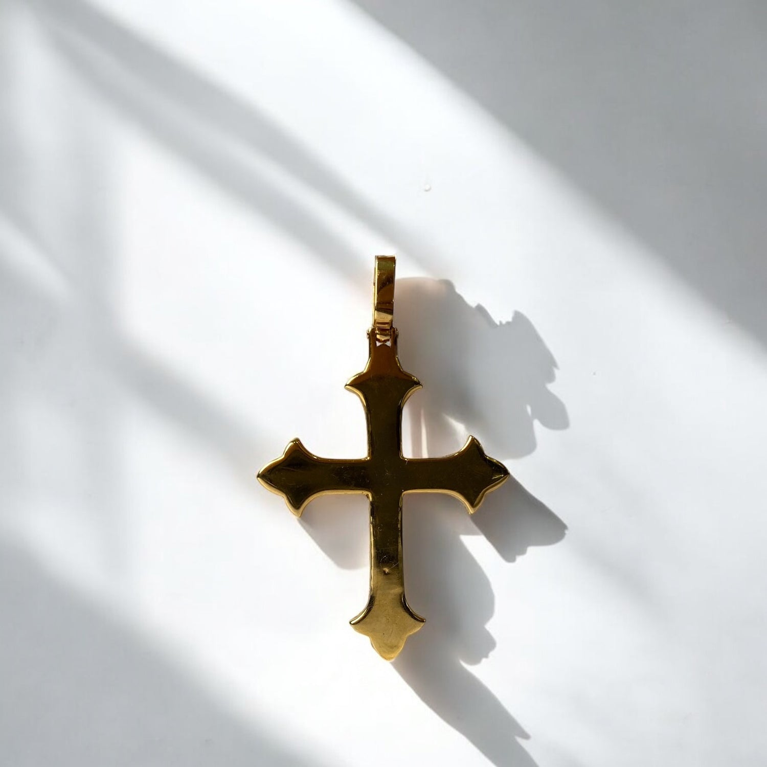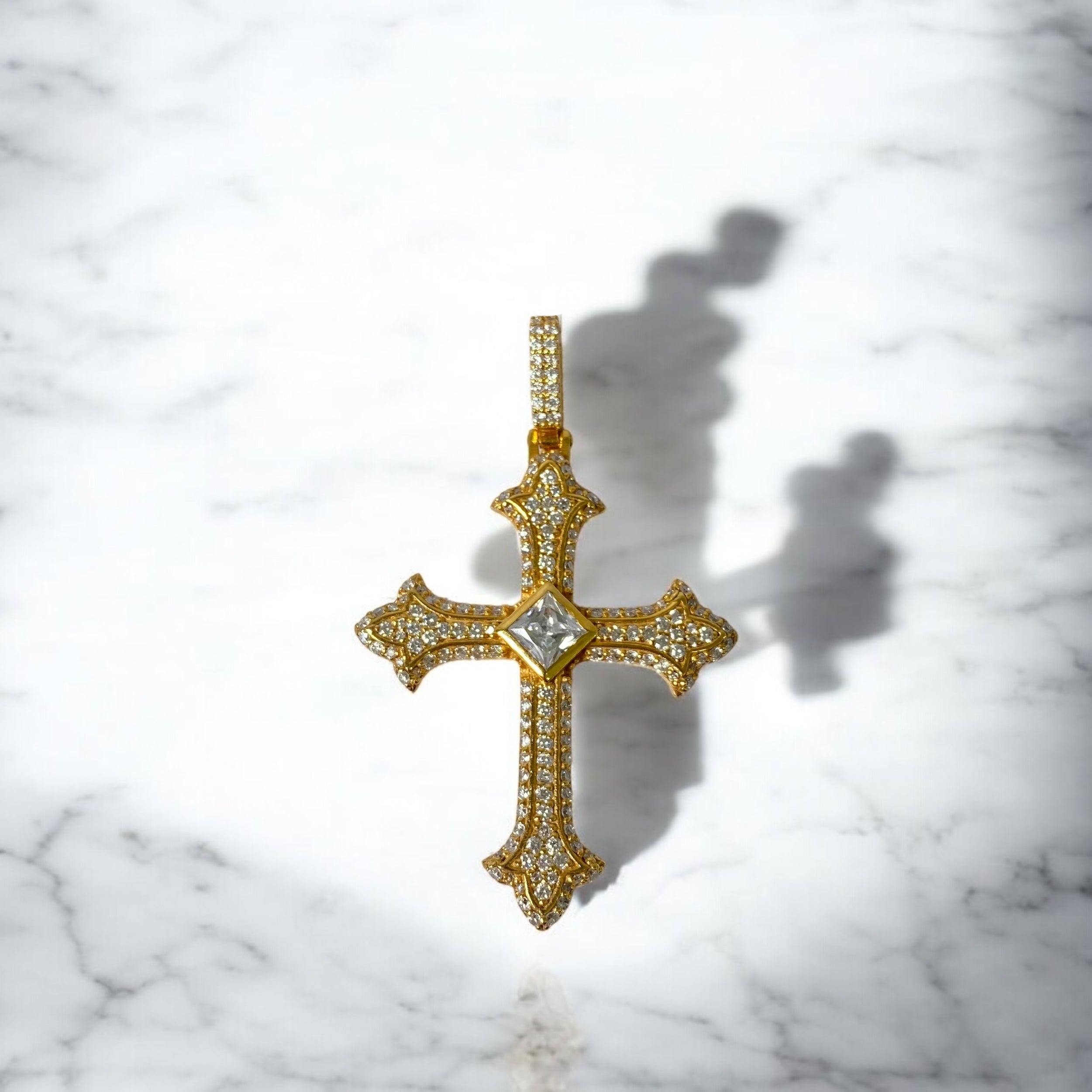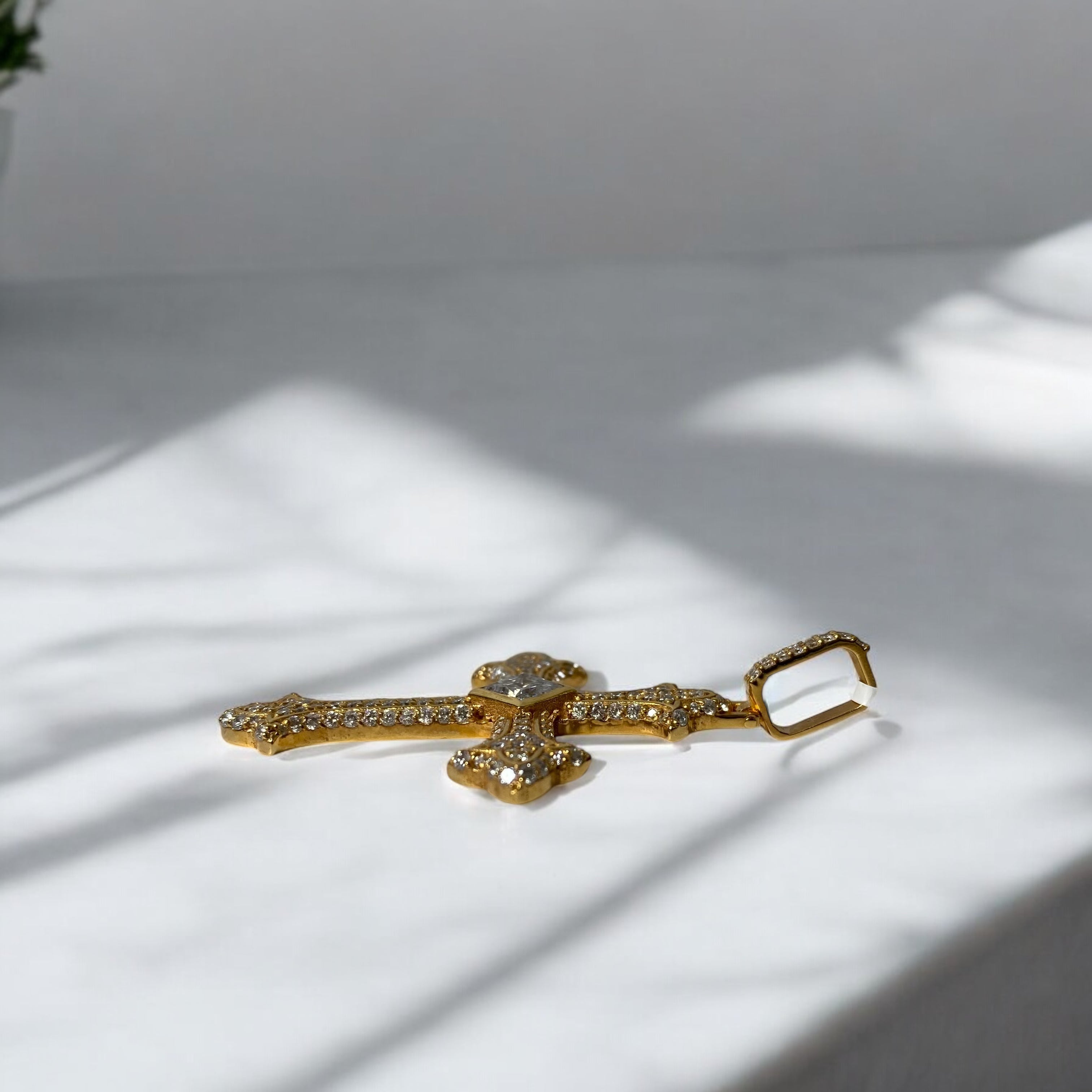 14K Yellow Gold Cross Pendant Lab Dia / 9gr