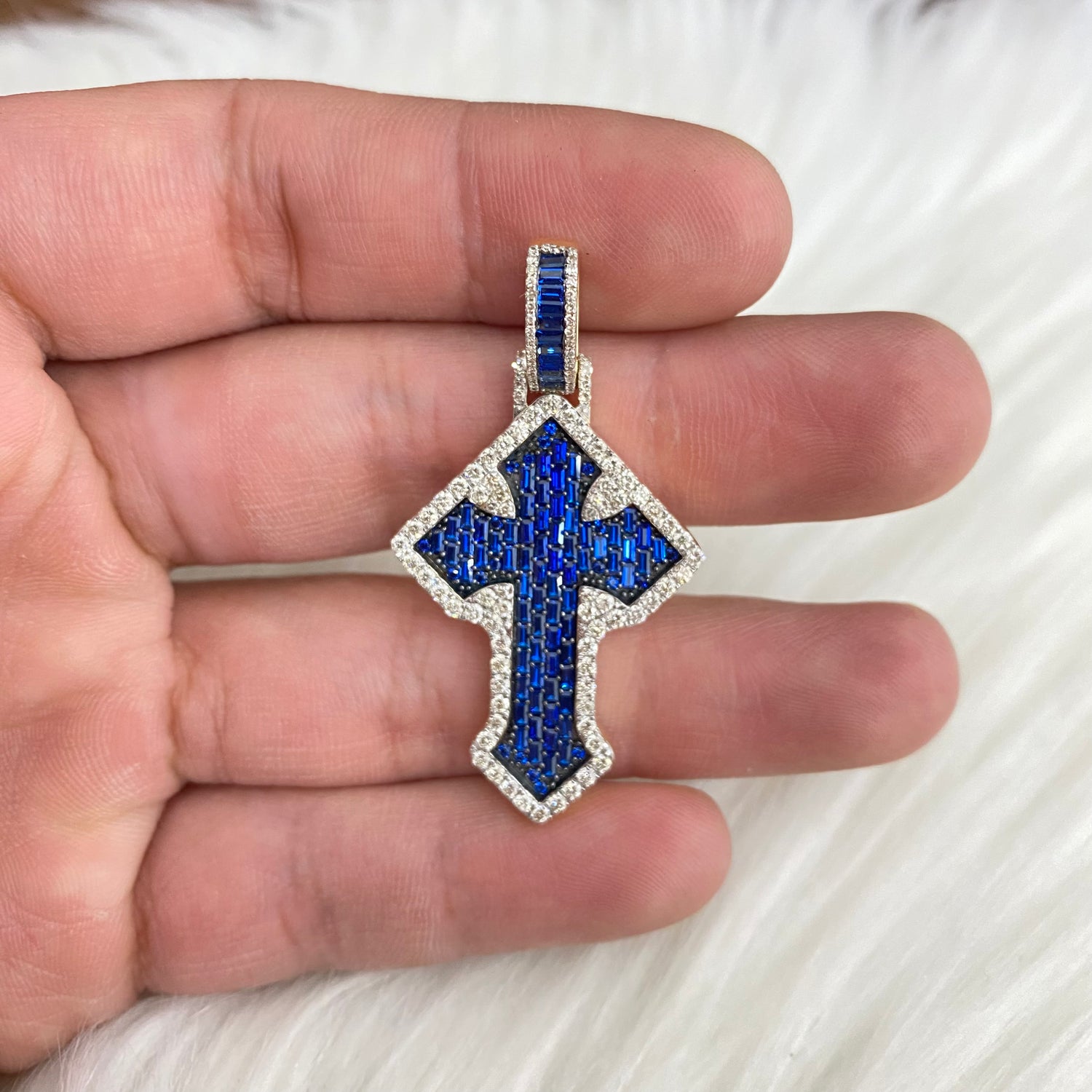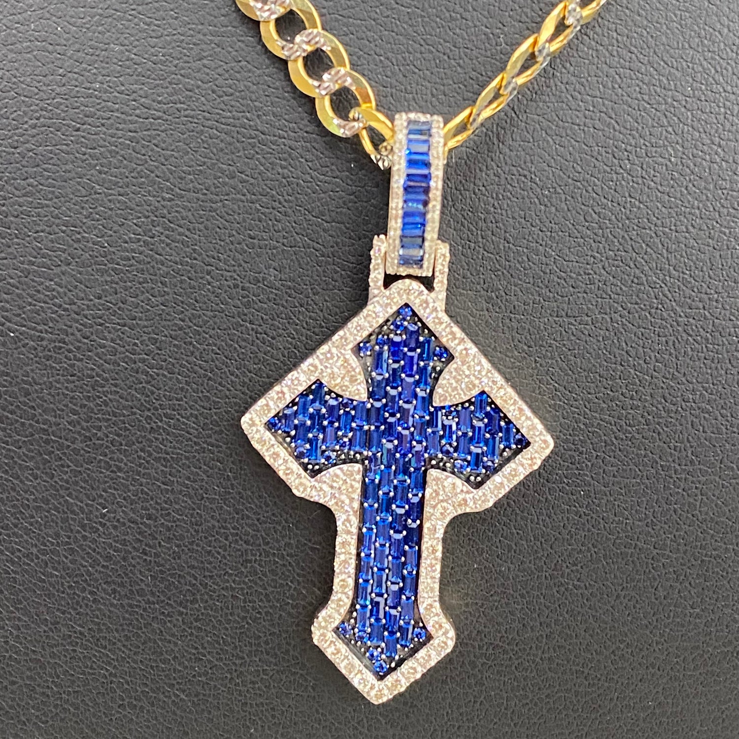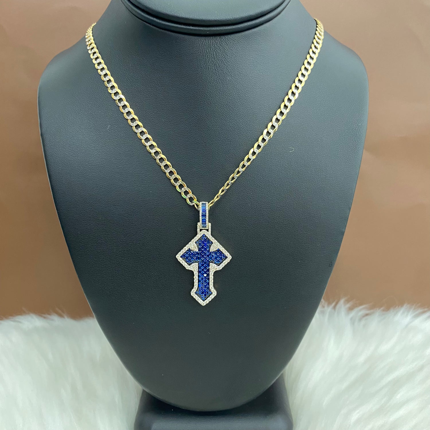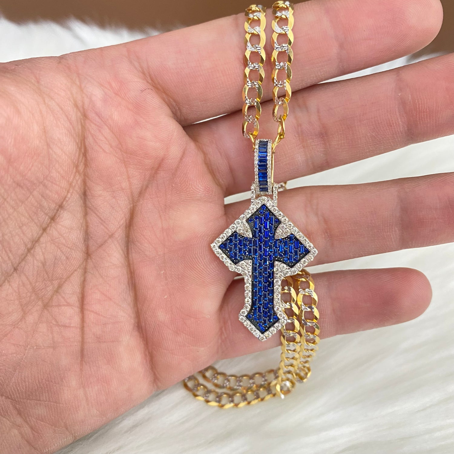 14K Yellow Gold Diamond Blue Cross Pendant Ct Dia / 10.7gr