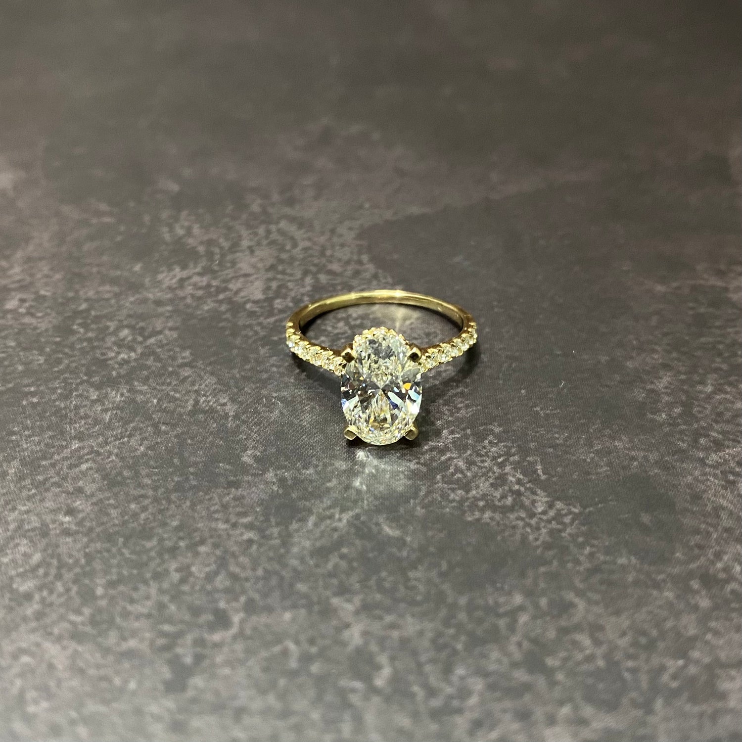 14K Yellow Gold Lab Diamond Oval Brilliant Engagement Ring 2.49Ct Lab Dia Vs / 2.88gr / Size 6.5