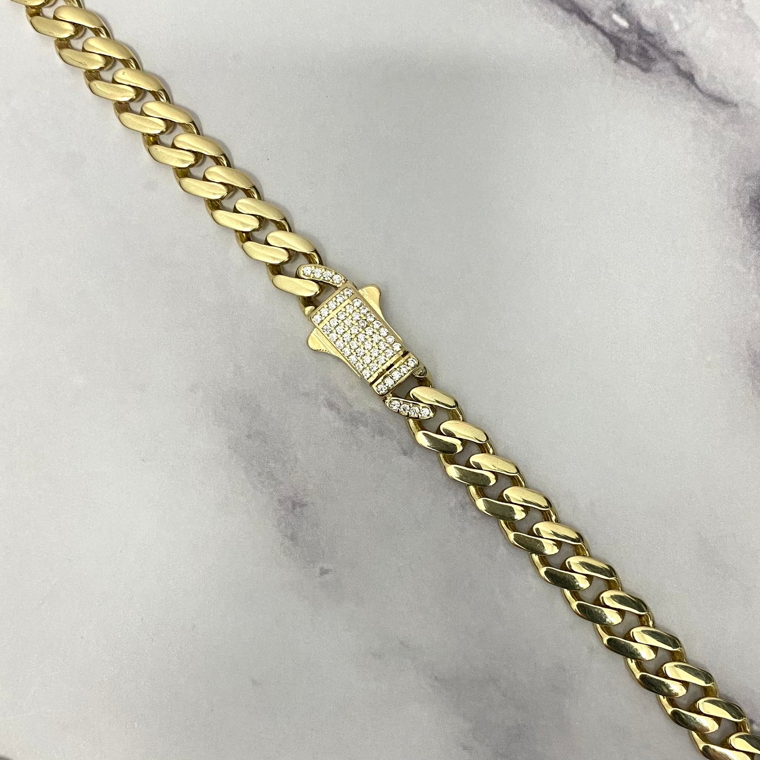 14K Yellow Gold Monaco Cuban Link Chain With Zircons / 14gr / 6mm / 16in
