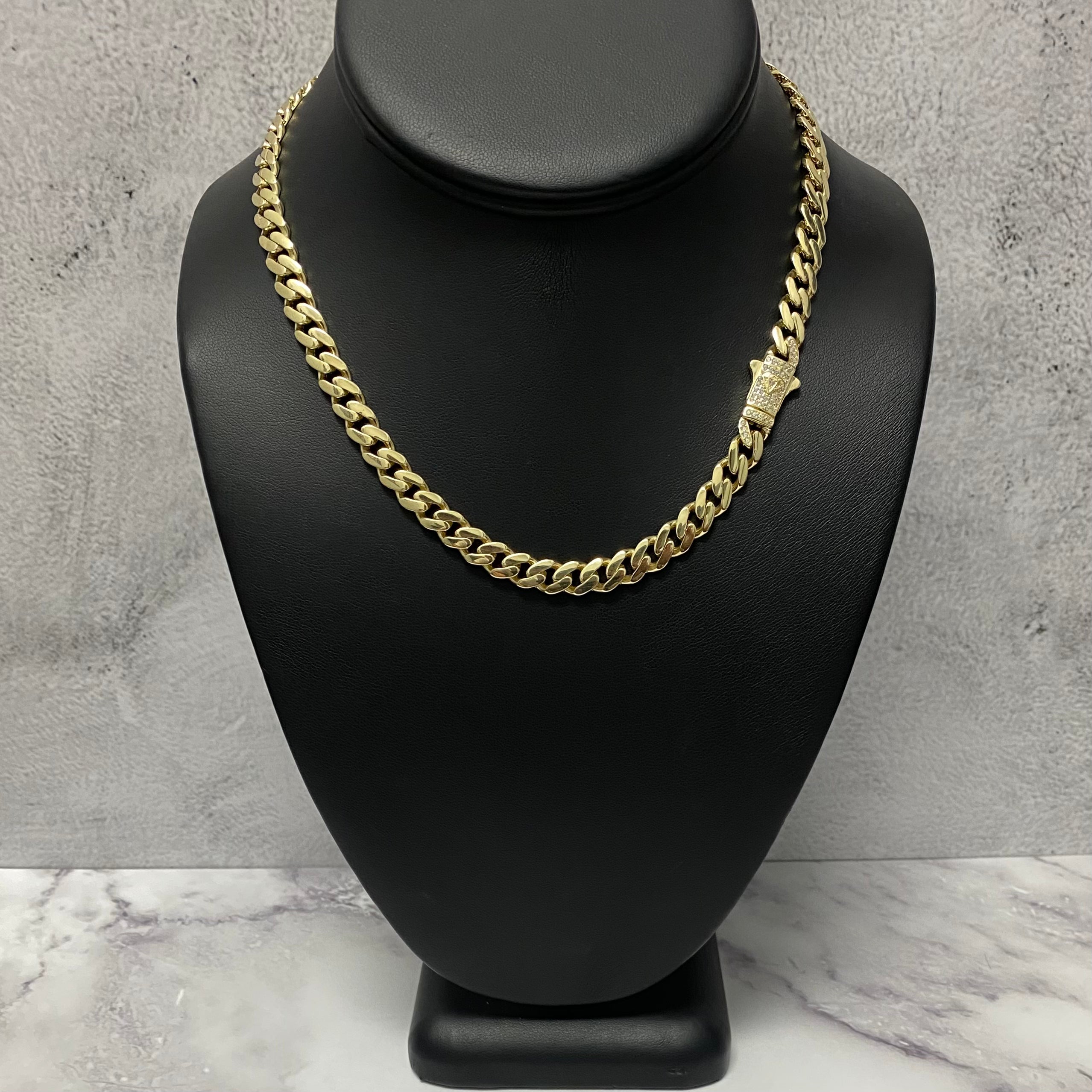 14K Yellow Gold Monaco Cuban Link Chain With Zircons / 16.4gr / 5mm / 20in