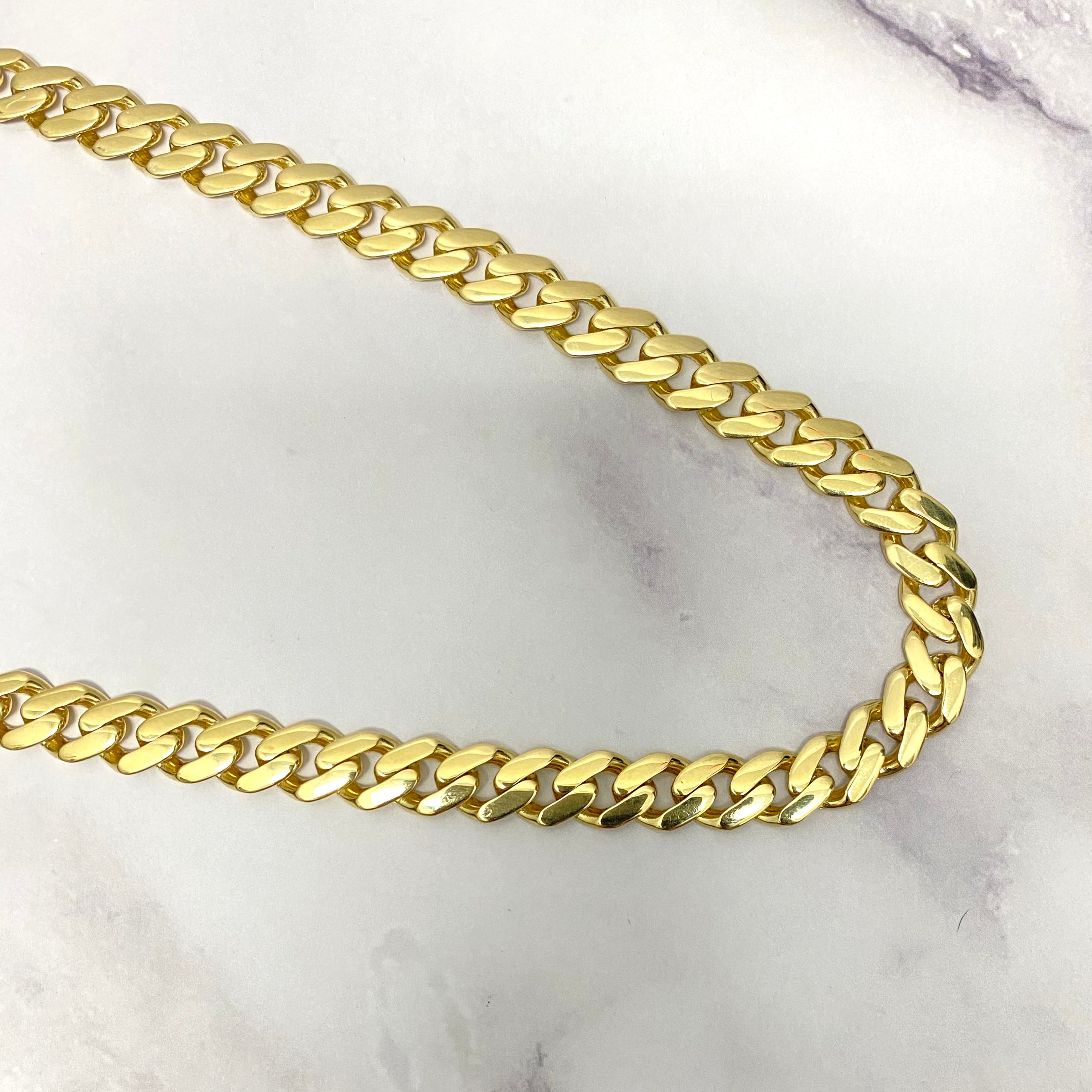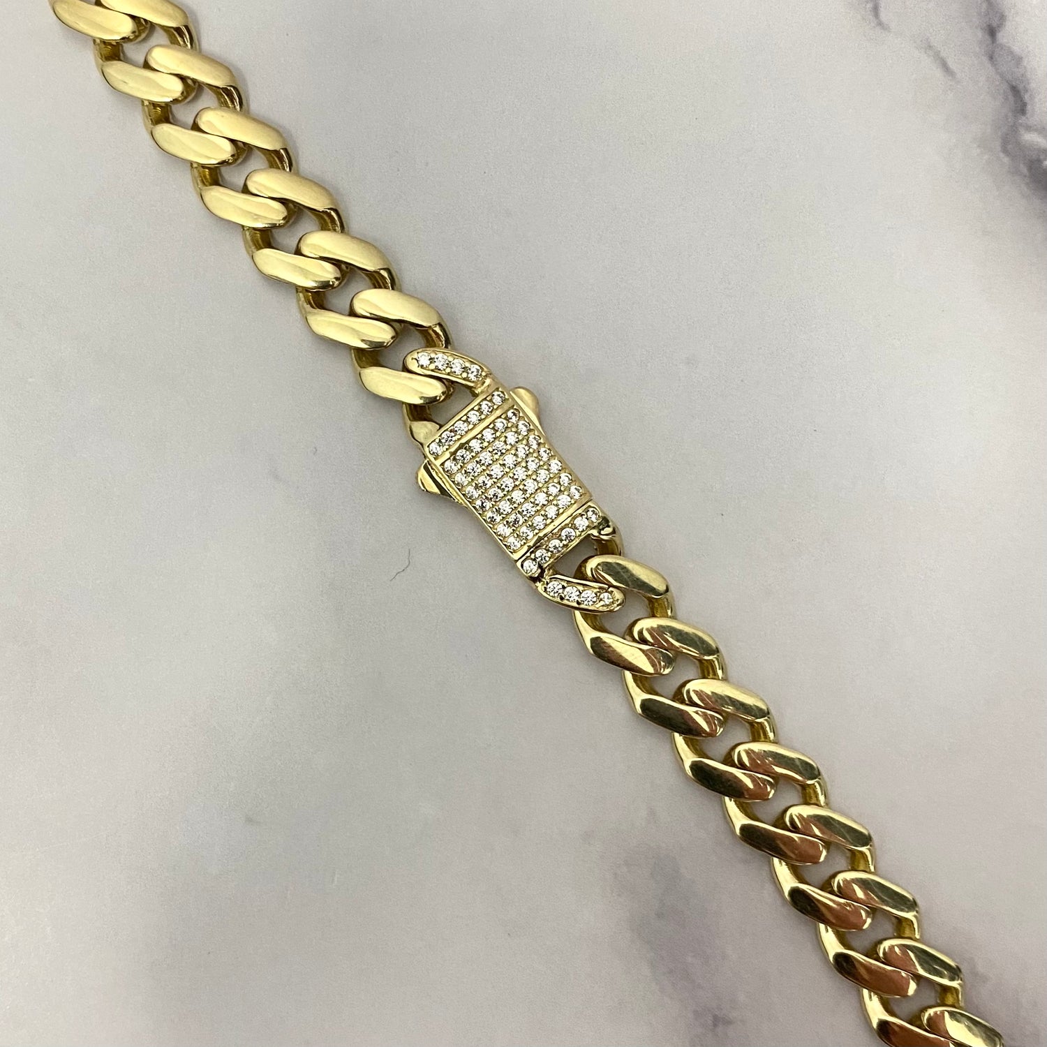 14K Yellow Gold Monaco Cuban Link Chain With Zircons / 32.4gr / 9.2mm / 24in