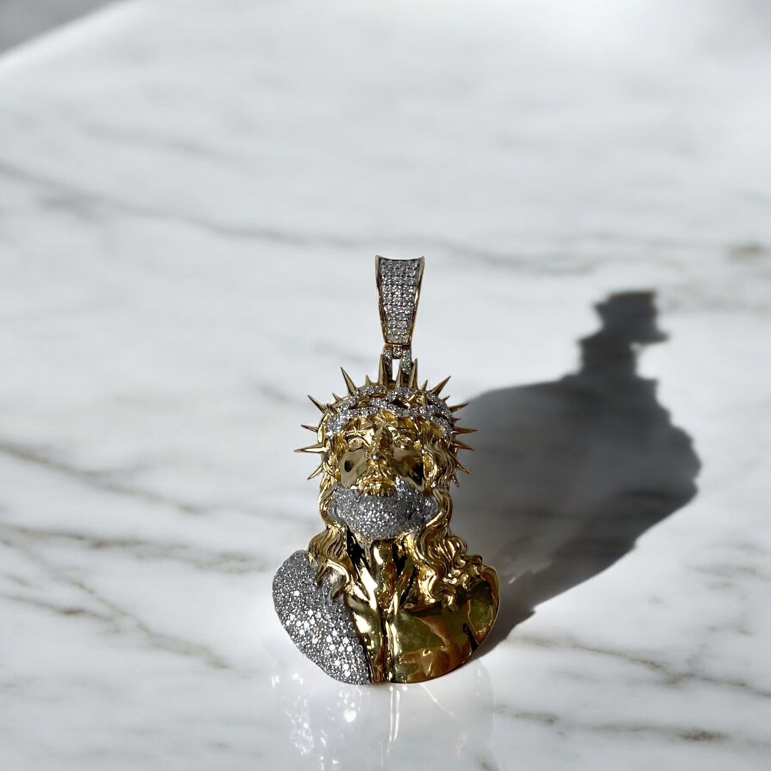 14K Yellow - White Gold Jesus Pendant 1.05Ct Dia / 11.3gr