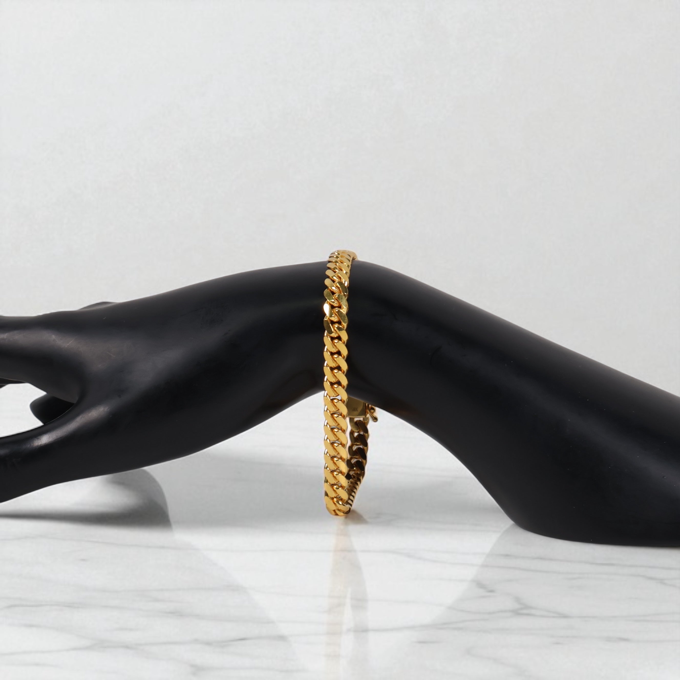 14K YG Micro Cuban Links Bracelet / 24.5gr / 6.3mm / 7 3/4in /