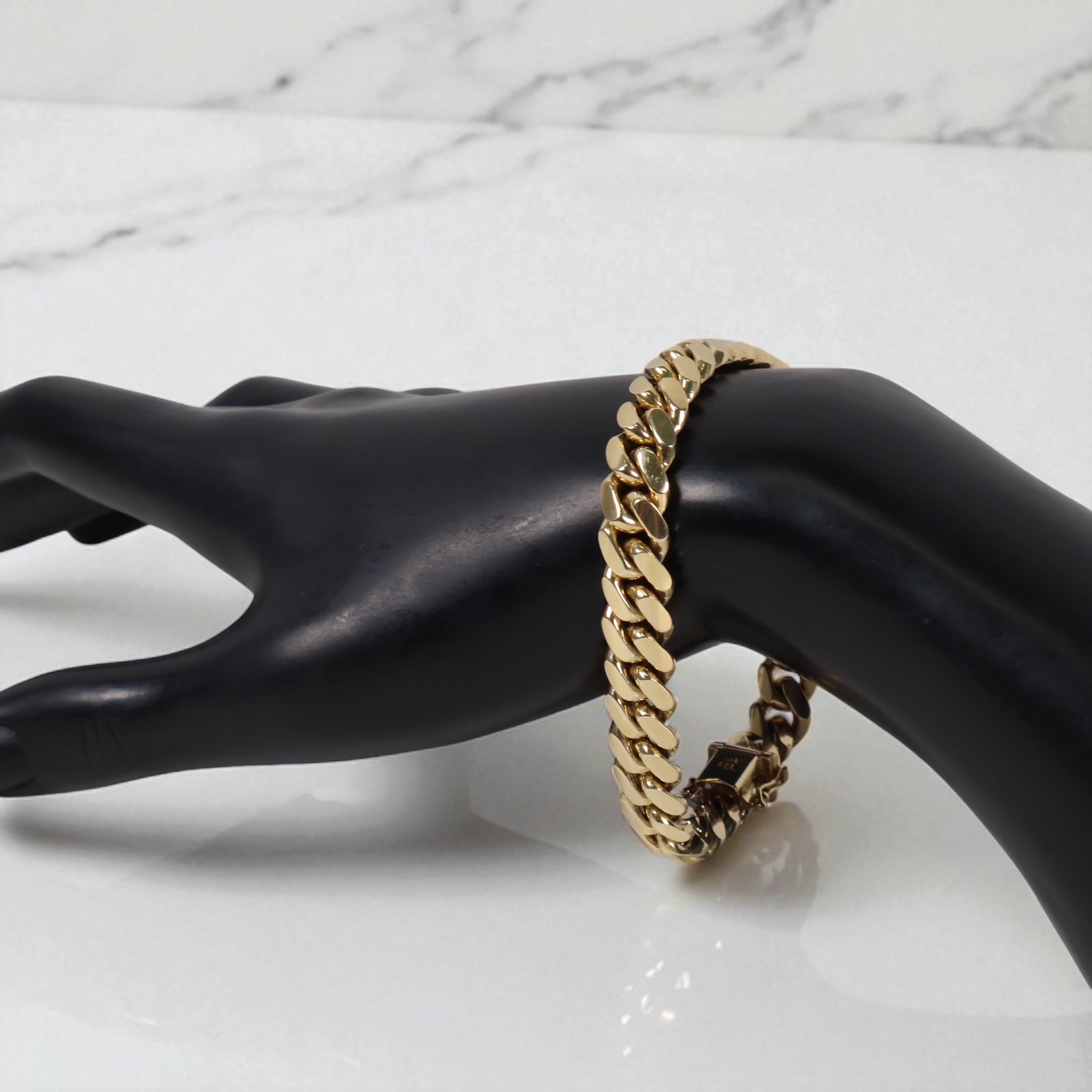 14K YG Micro Cuban Links Bracelet / 56.4gr / 9.2mm / 8in /