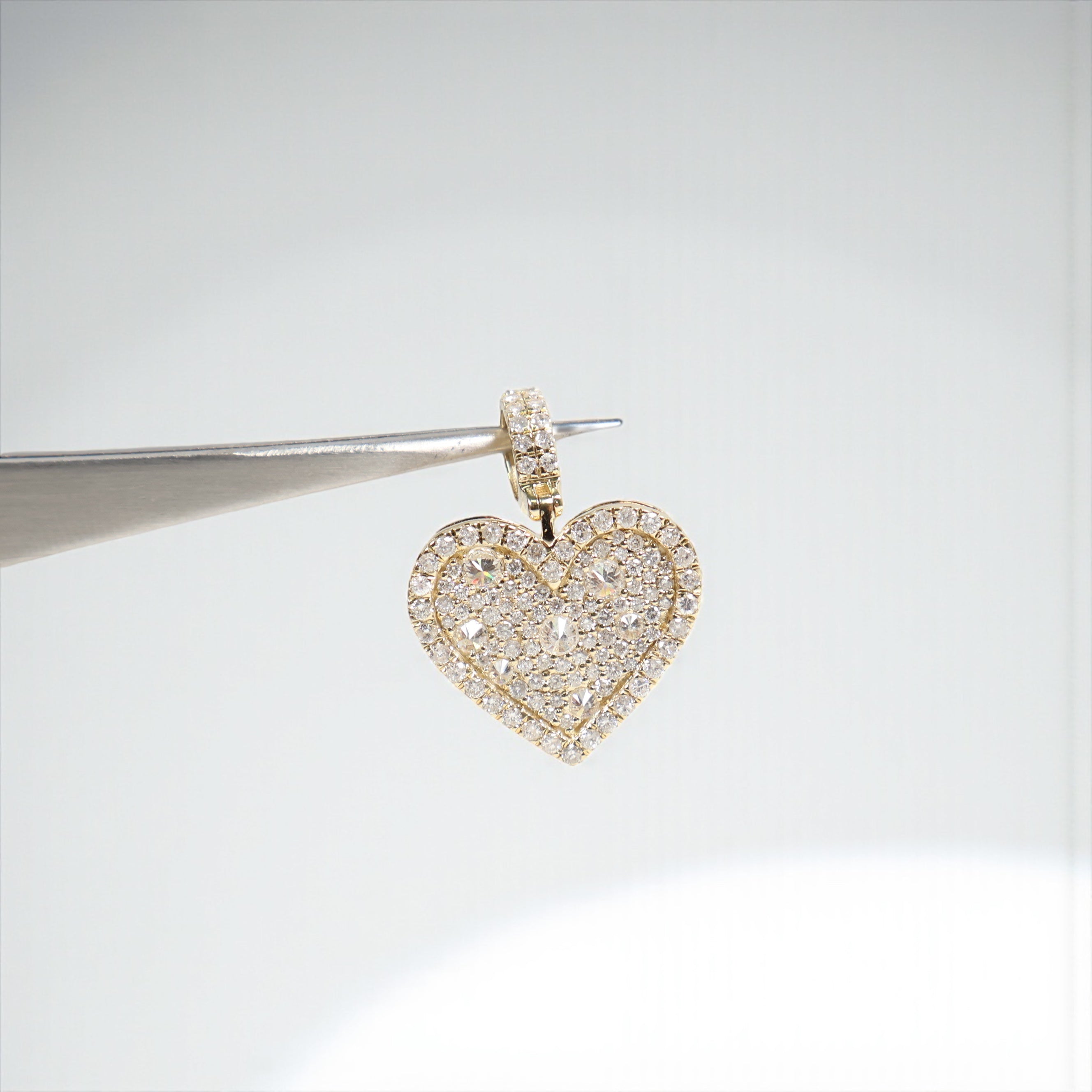 14K YG Reverse Diamond Heart Pendant / 3.17gr / 1in / D-1.50Ct