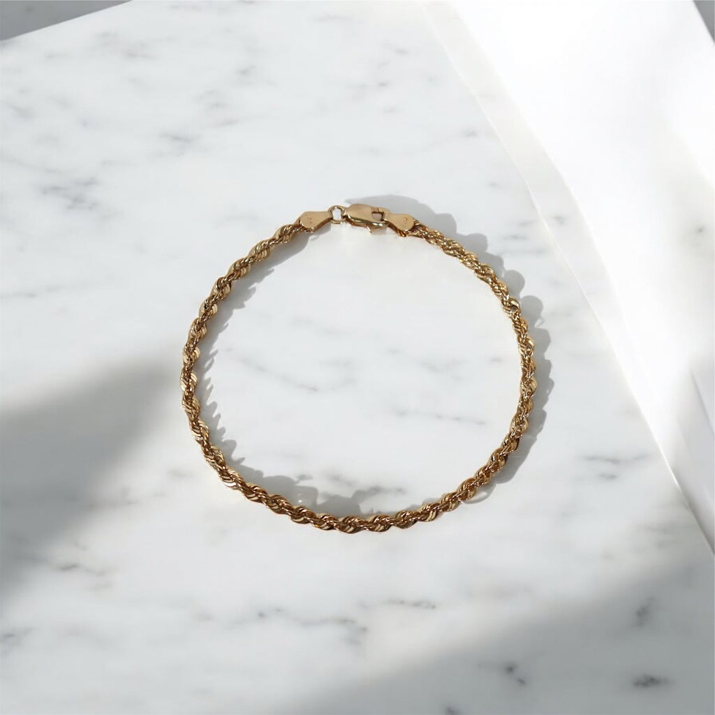 14K YG Rope Bracelet / 1.53gr / 1.5mm / 7.5in