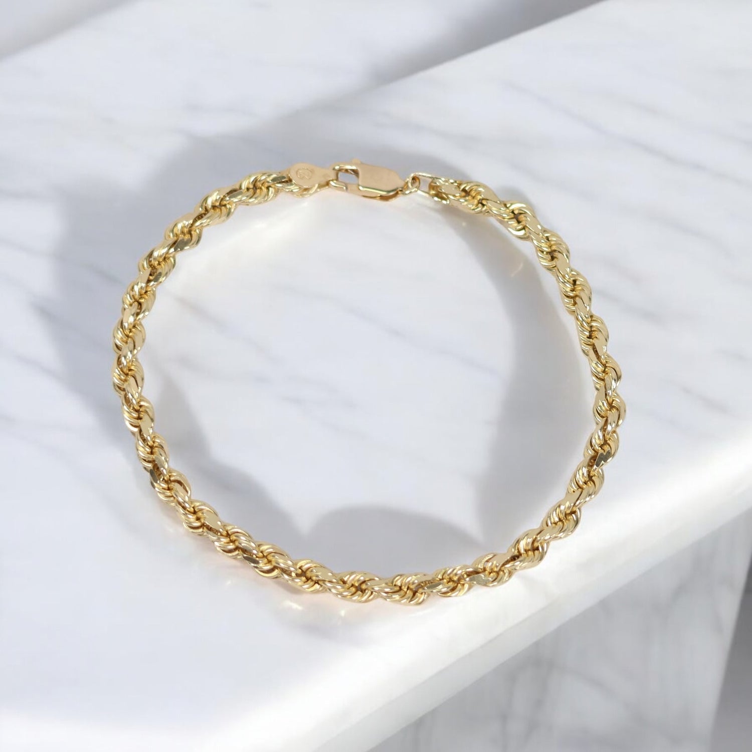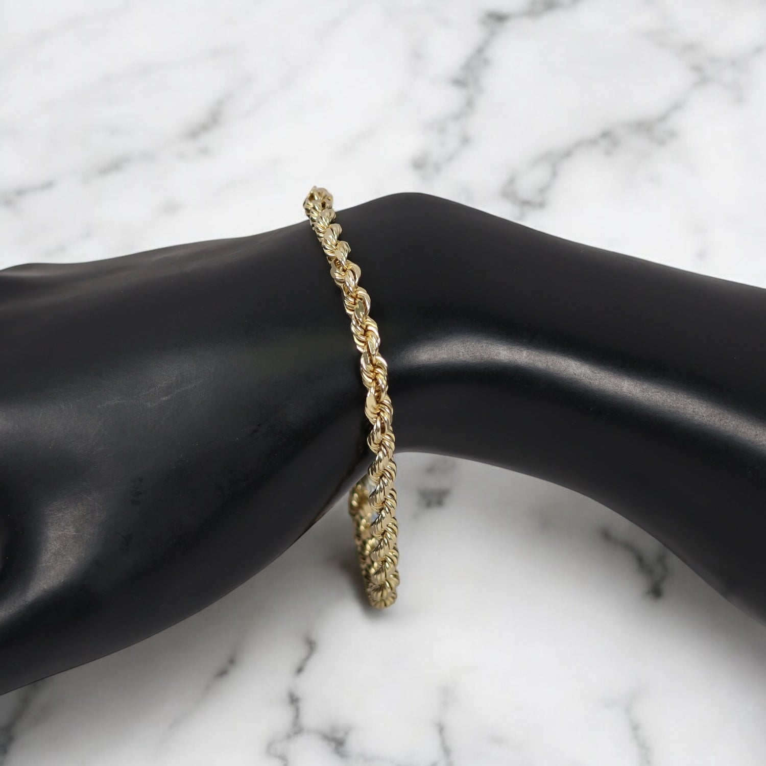 14K YG Rope Solid Bracelet / 14.26gr / 4mm / 8in /