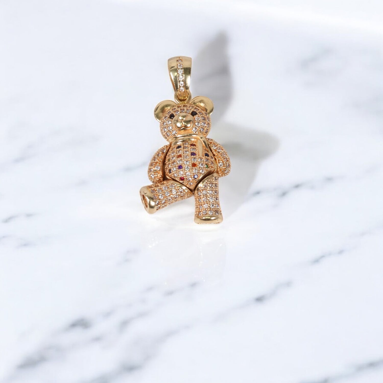 18K Yellow Gold Articulate Bear Pendant With Color Zircons / 8.9gr