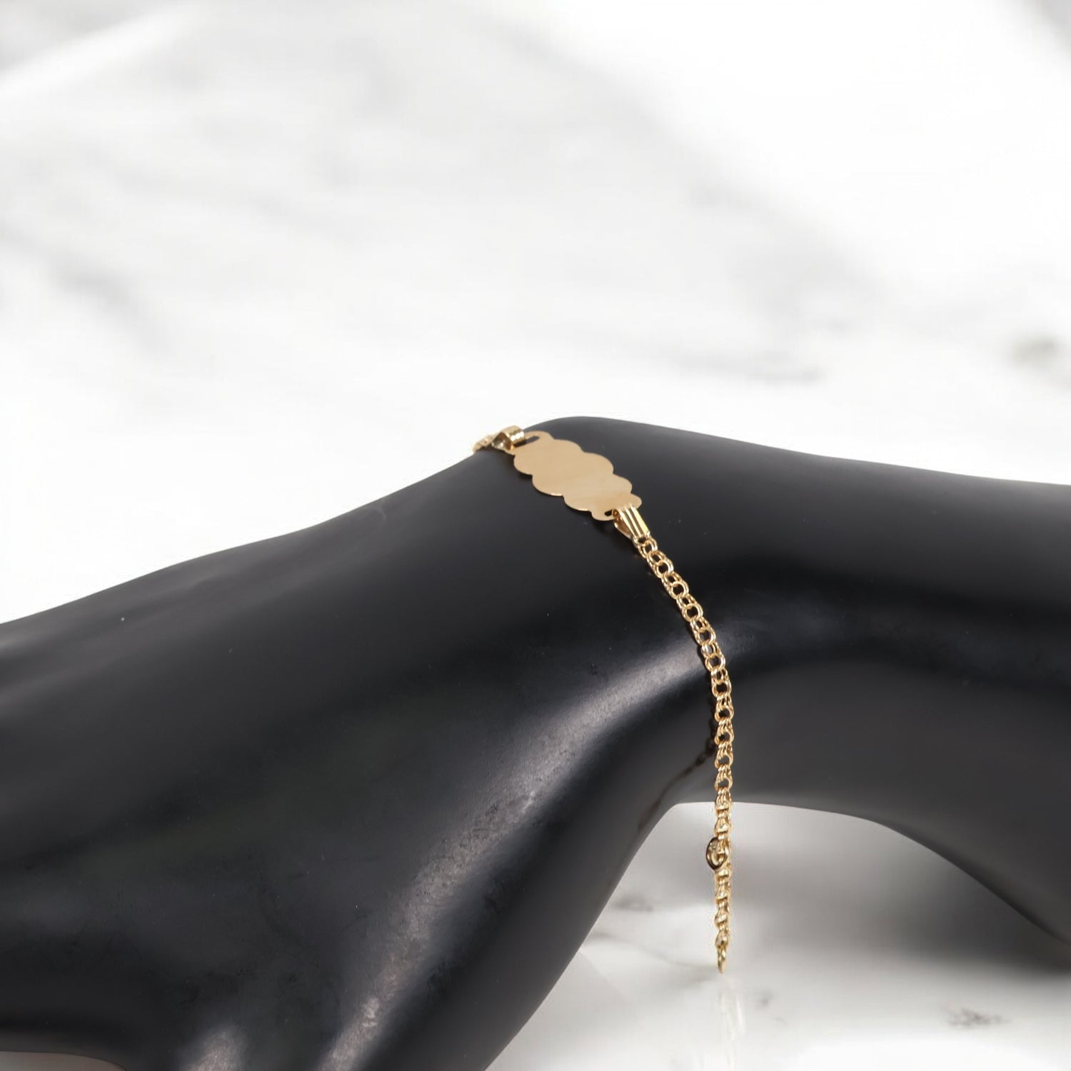 18K Yellow Gold Cloud Plate Followed Hoop Bracelet / 1.3gr / 2.4mm / 5.5in