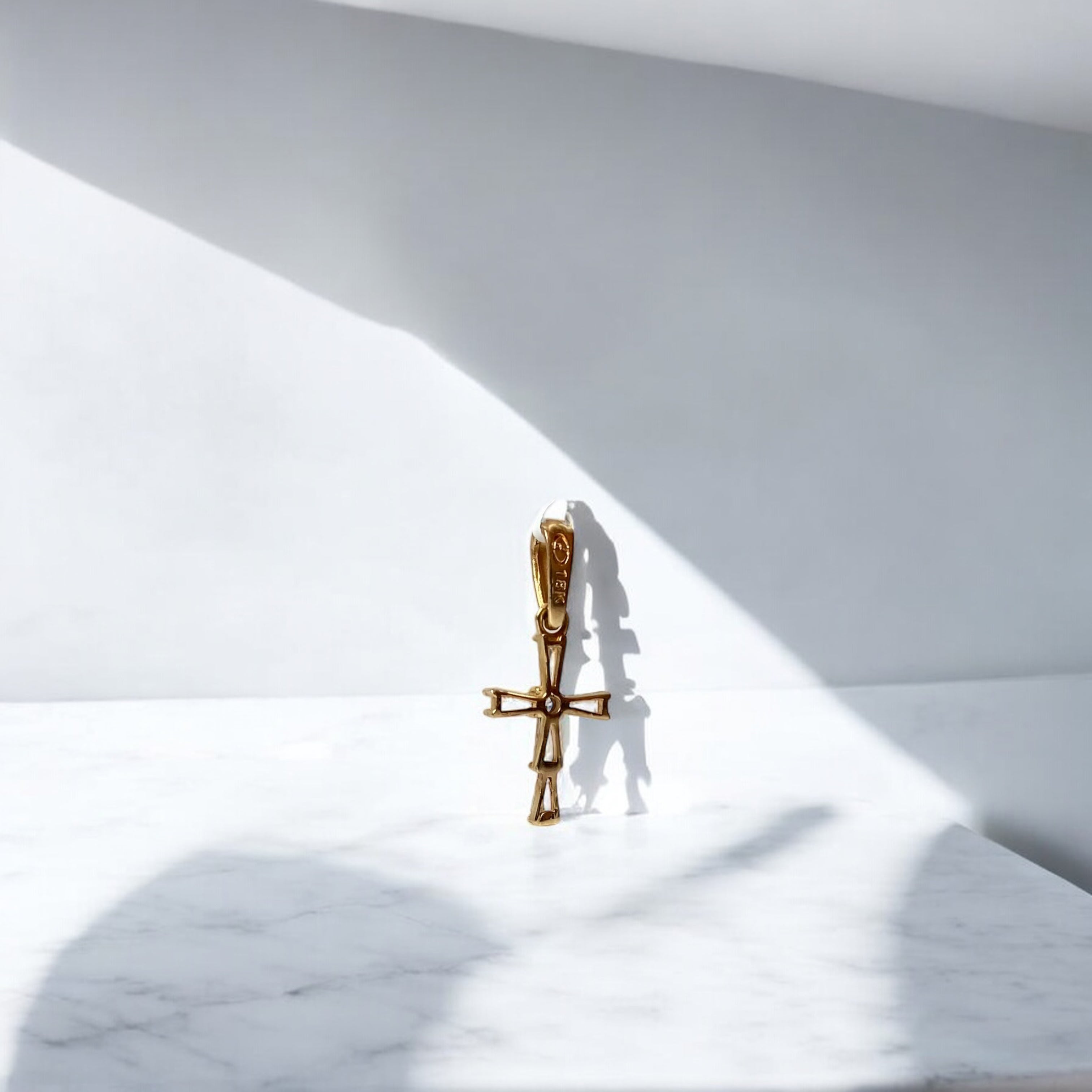 18K Yellow Gold Cross Pendant With Zircons / 0.91gr / 0.8in