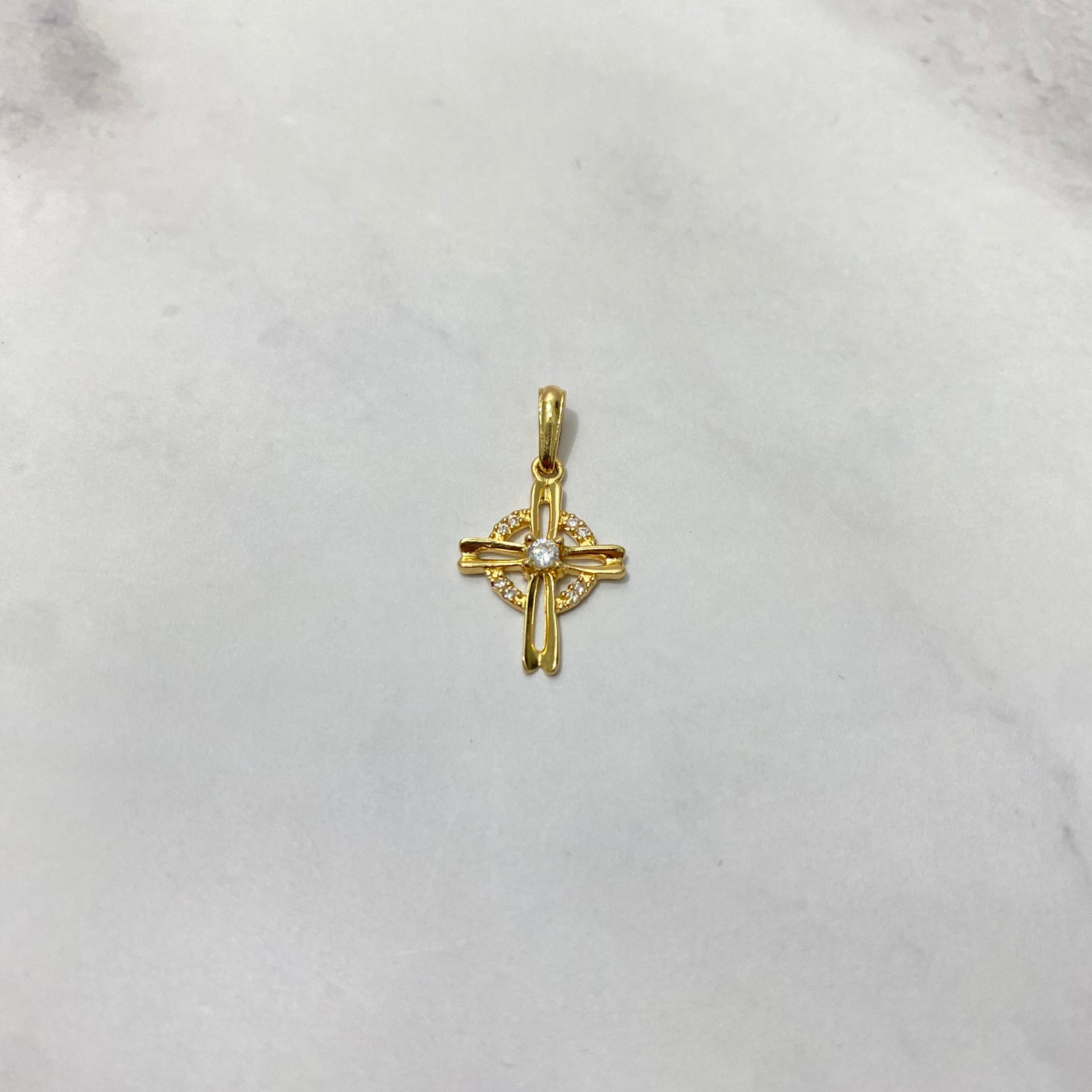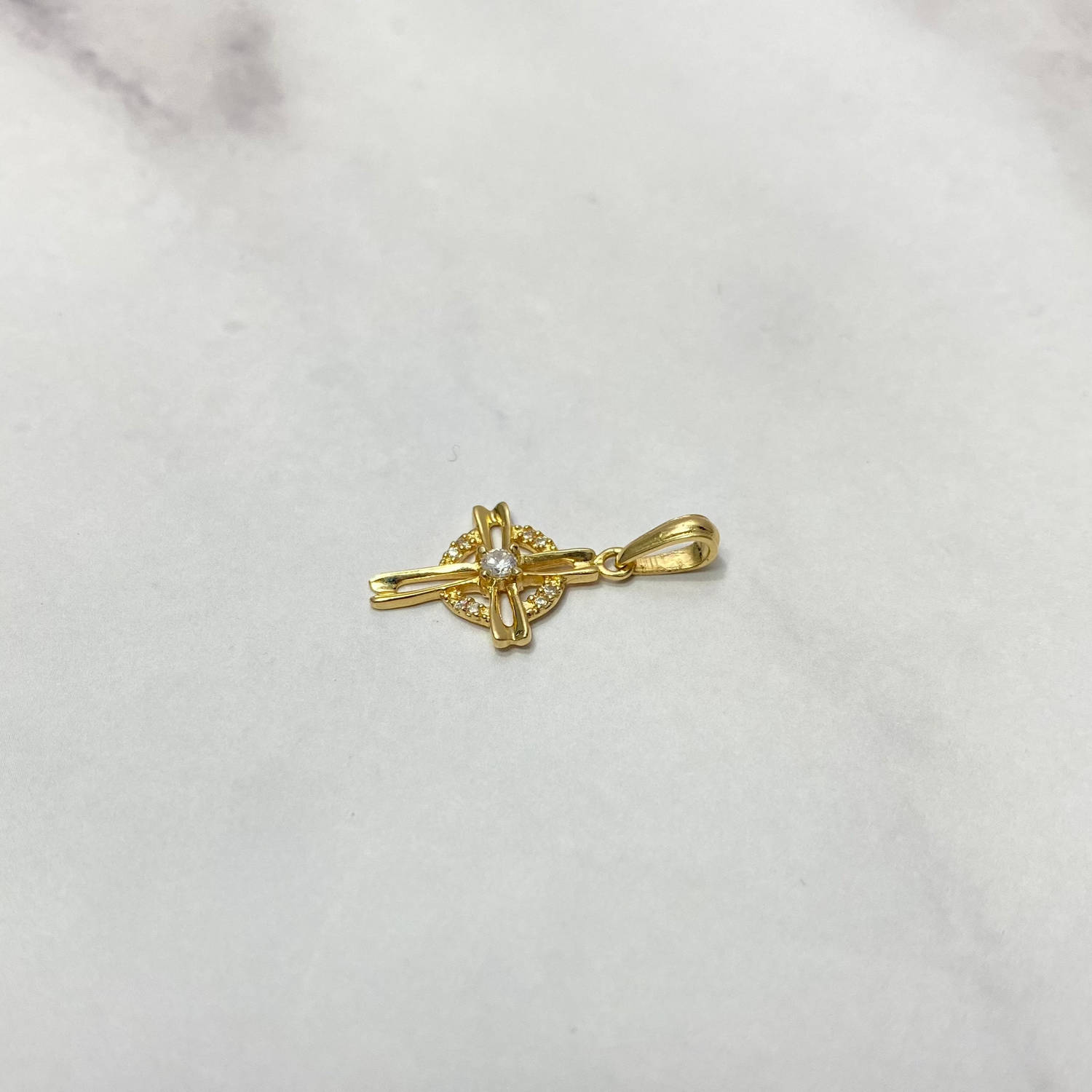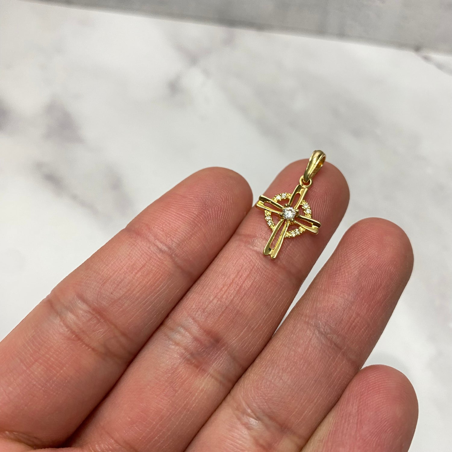 18K Yellow Gold Cross Pendant With Zircons / 1.21gr / 1in