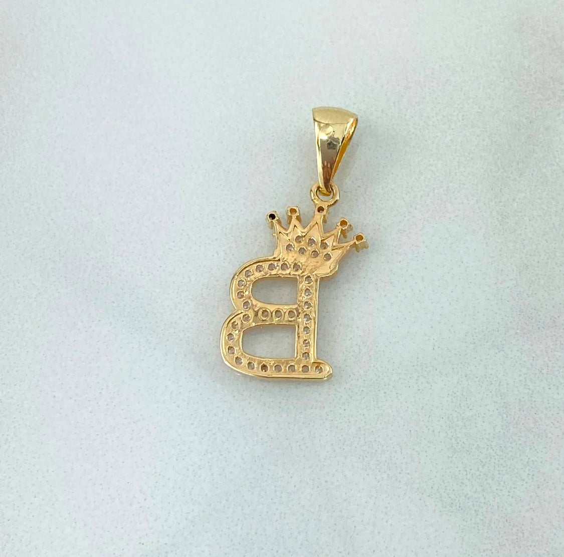 18K Yellow Gold Letter B With Crown Pendant With Zircons / 1.81gr / 1in