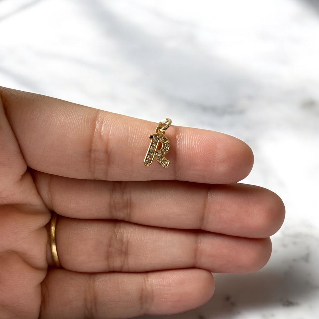 18K Yellow Gold Letter R Italics Pendant With Zircons / 0.61gr / 0.6in