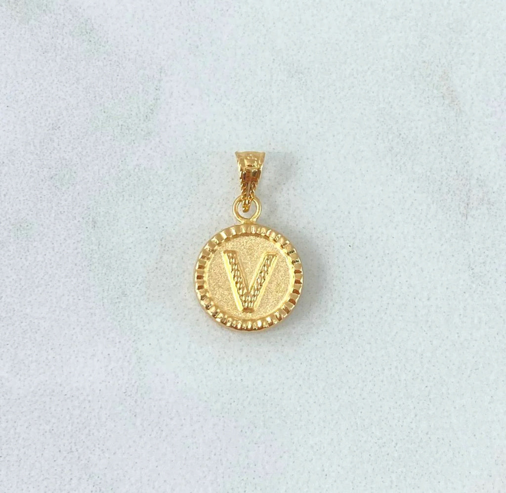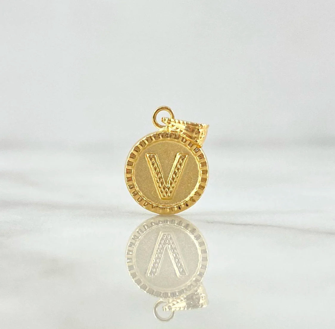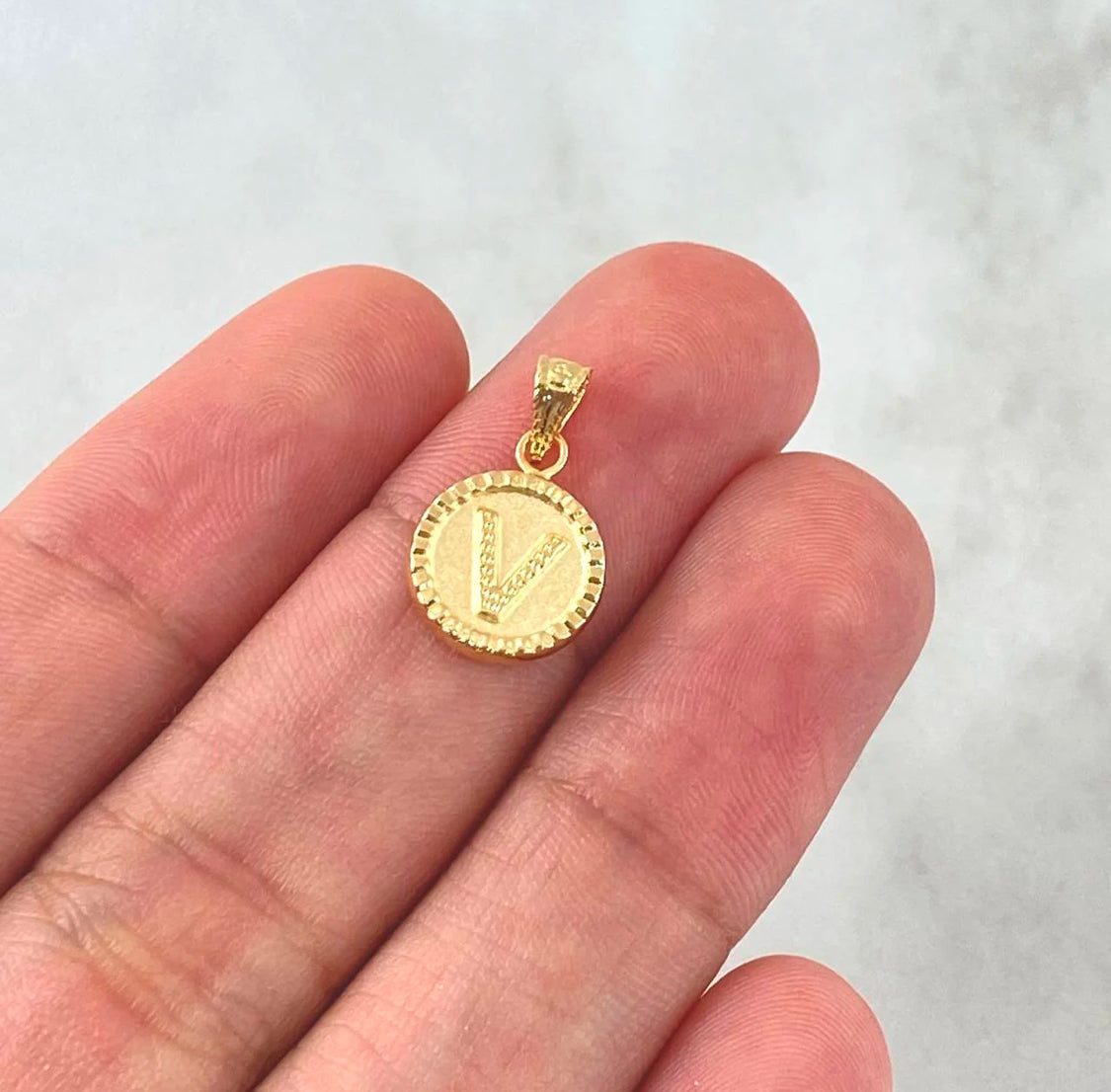 18K YG Letter V Mate Bordered Circle Pendant / 0.54gr / 0.6in /