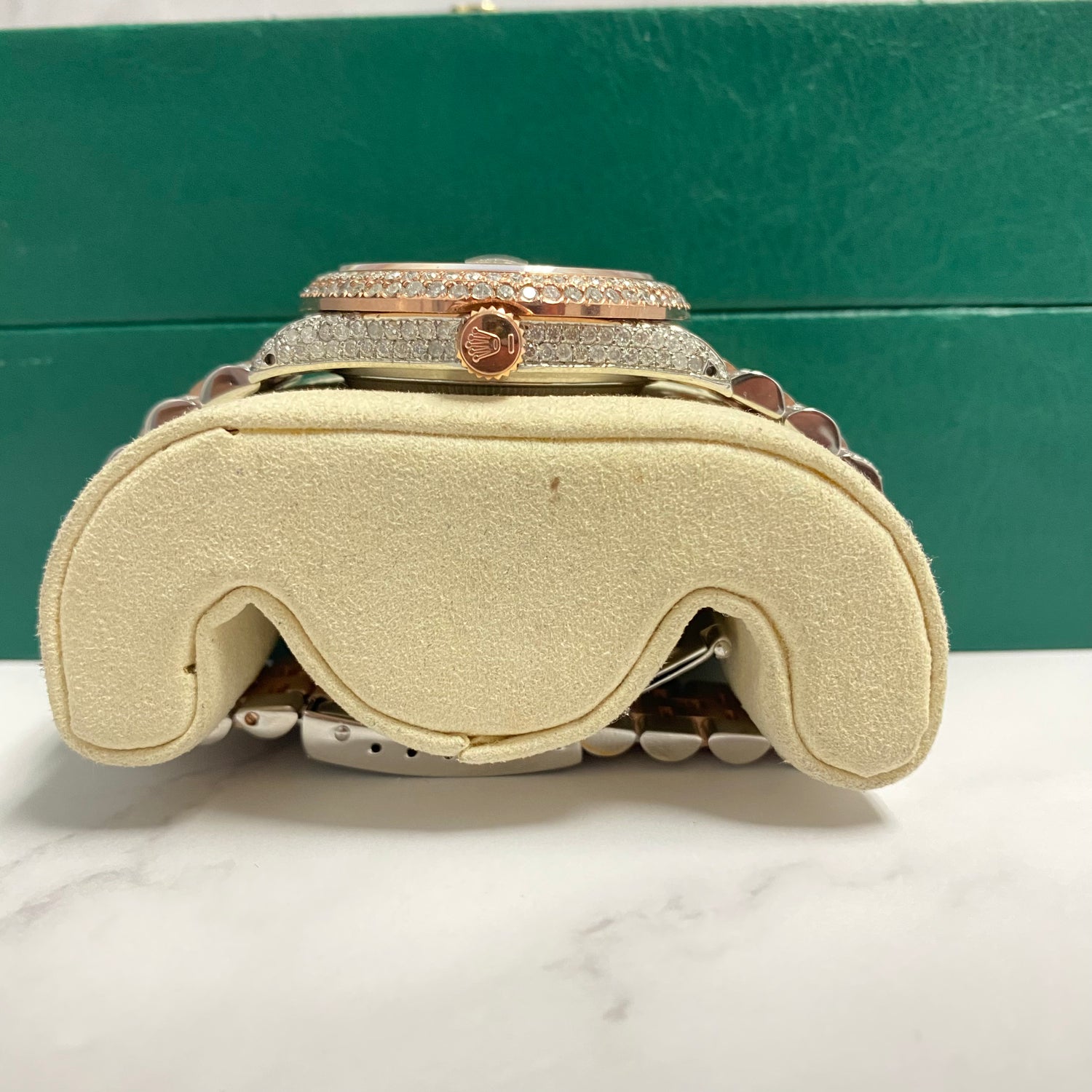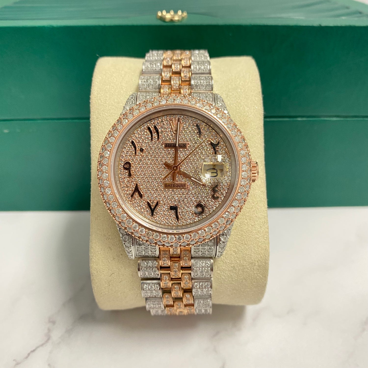 36Mm Bustdown Diamonds Rolex 2 Tone Rose Arabic Numbers Quick Set
