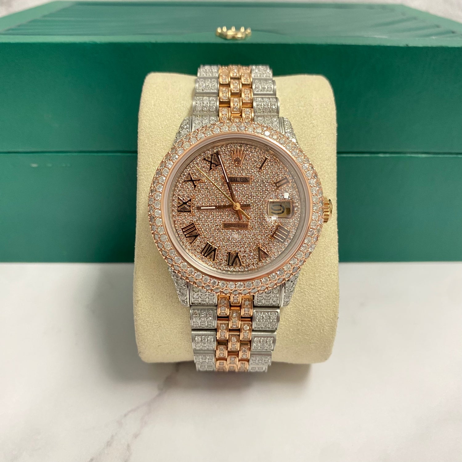 36Mm Bustdown Diamonds Rolex 2 Tone Rose Roman Numbers Quick Set