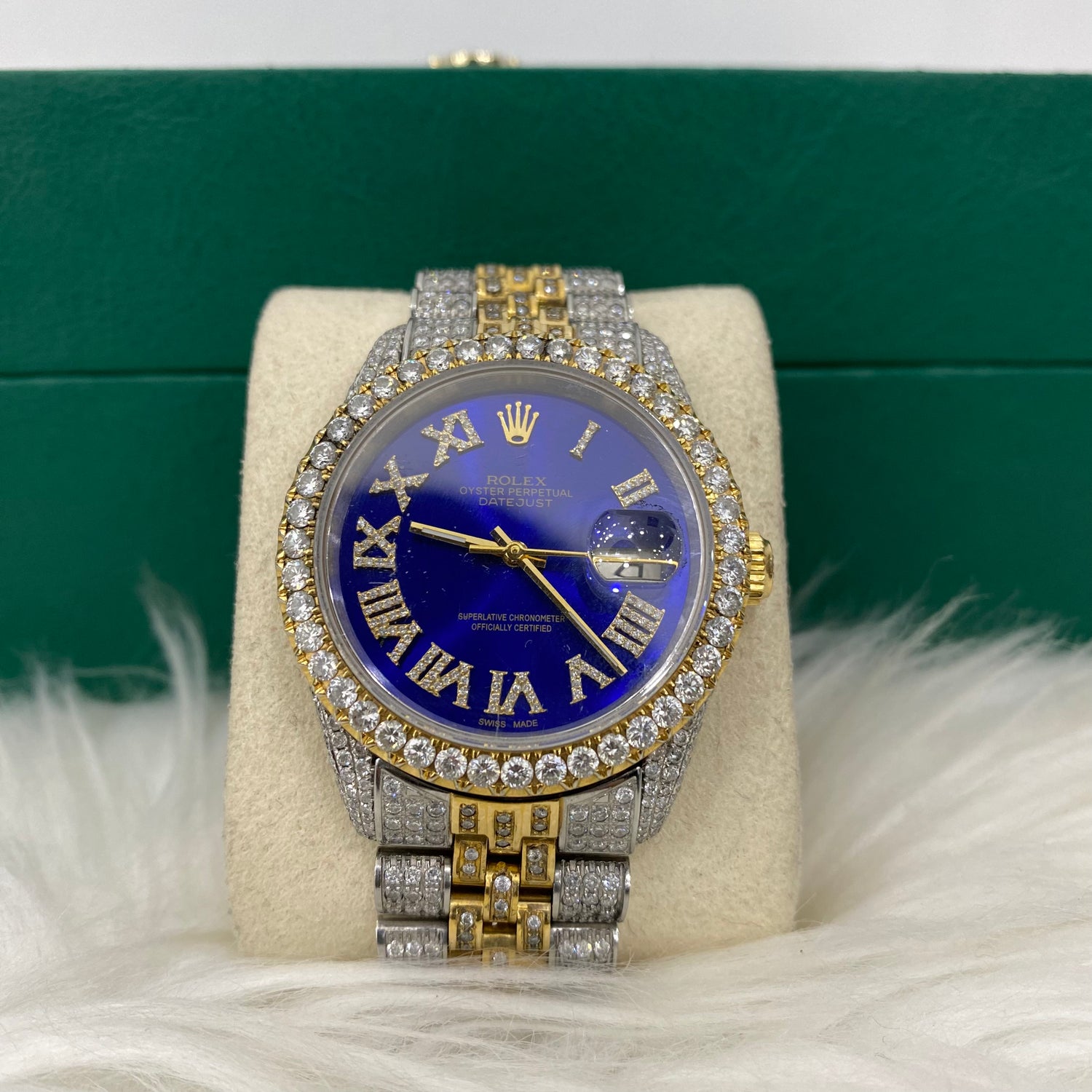 Rolex 36Mm Bustdown Blue Face Si/Vs Mixed Natural Diamonds
