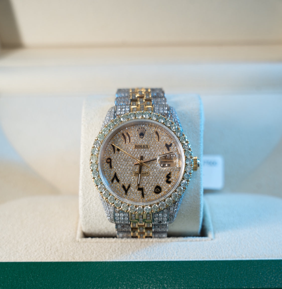 Rolex Date Just 36Mm 2005 Aftermarket Two Tone Bustdown Si/Vs Jubilee Band