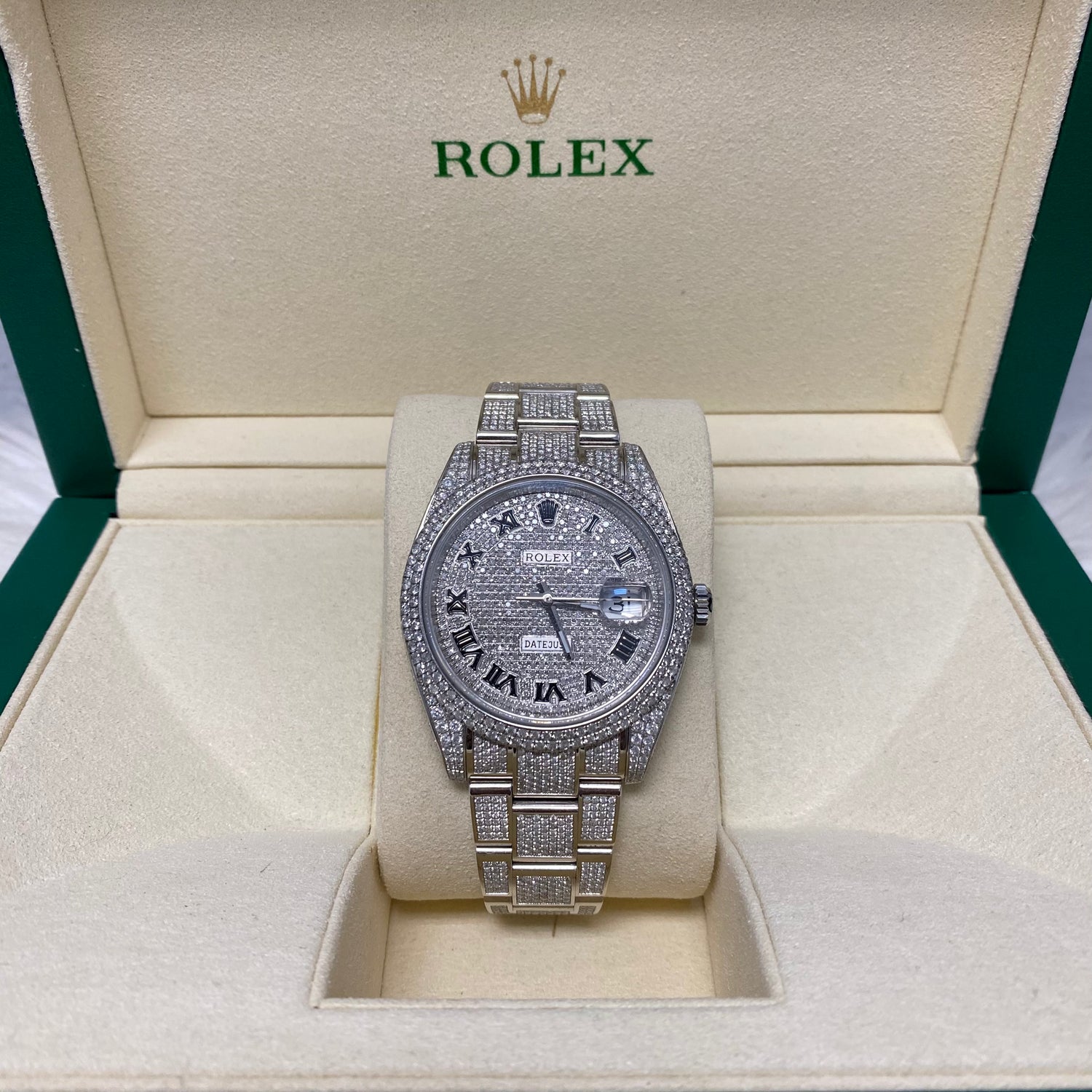 Rolex Datejust 126300 41Mm Diamond Set Watch Pave Roman Dial 2 Row Diamond Bezel Oyster Band