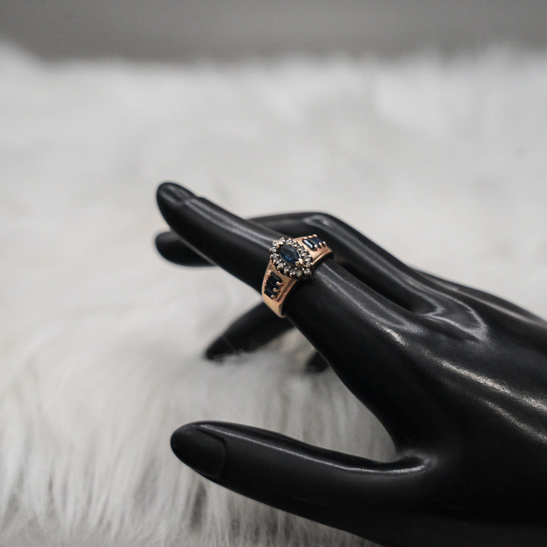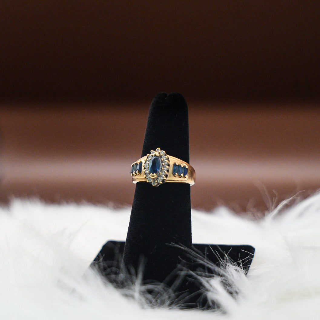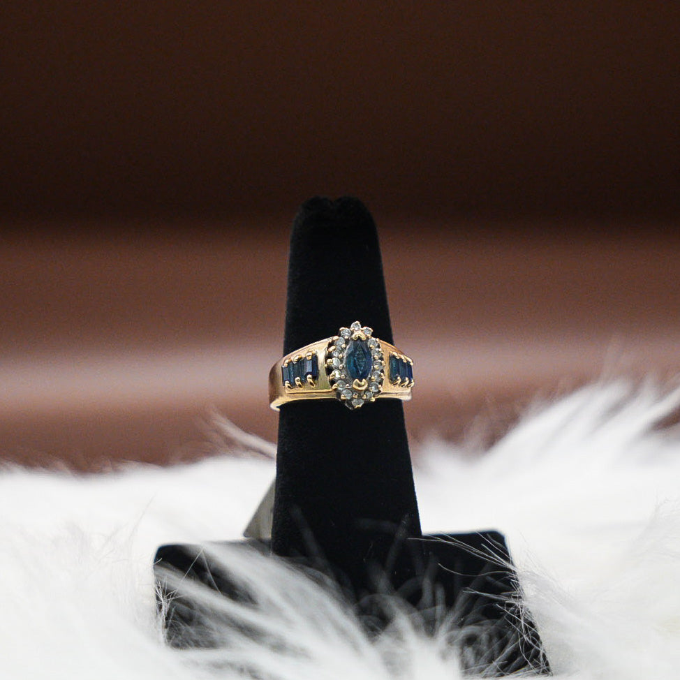 Women Ring 10K Yellow Gold With Diamonds-Sapphire / 4.5gr / Size 6